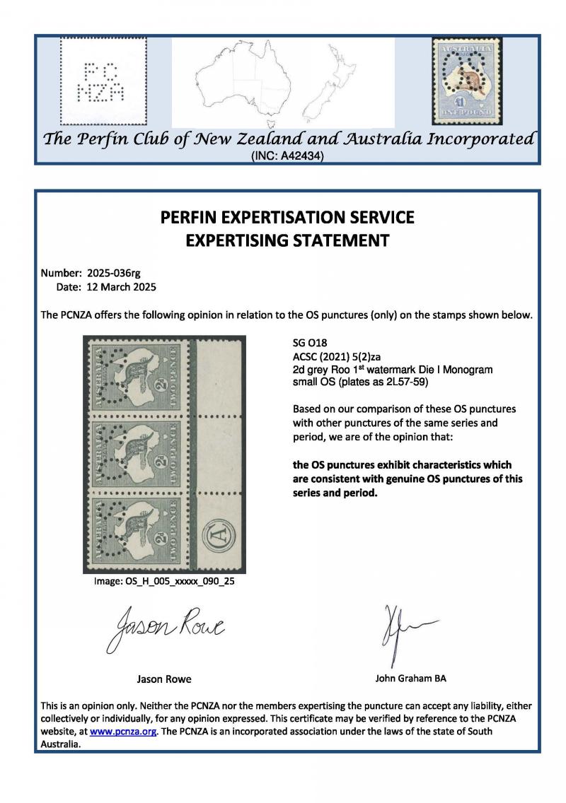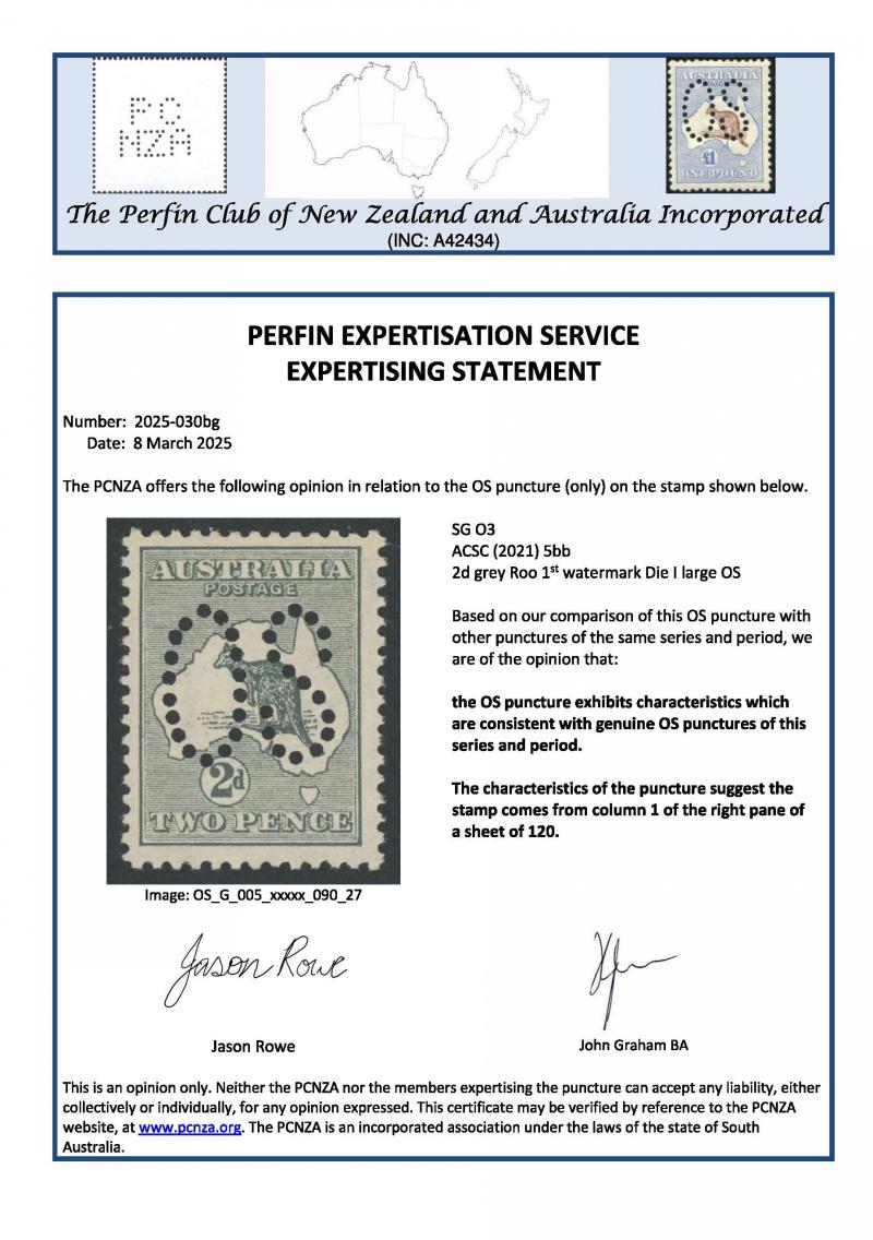 2d grey ACSC 5bb (SG O3), unmounted, Cat $325 (£85 for mounted). PCNZA Certificate (2025). (Image1) (Image2)