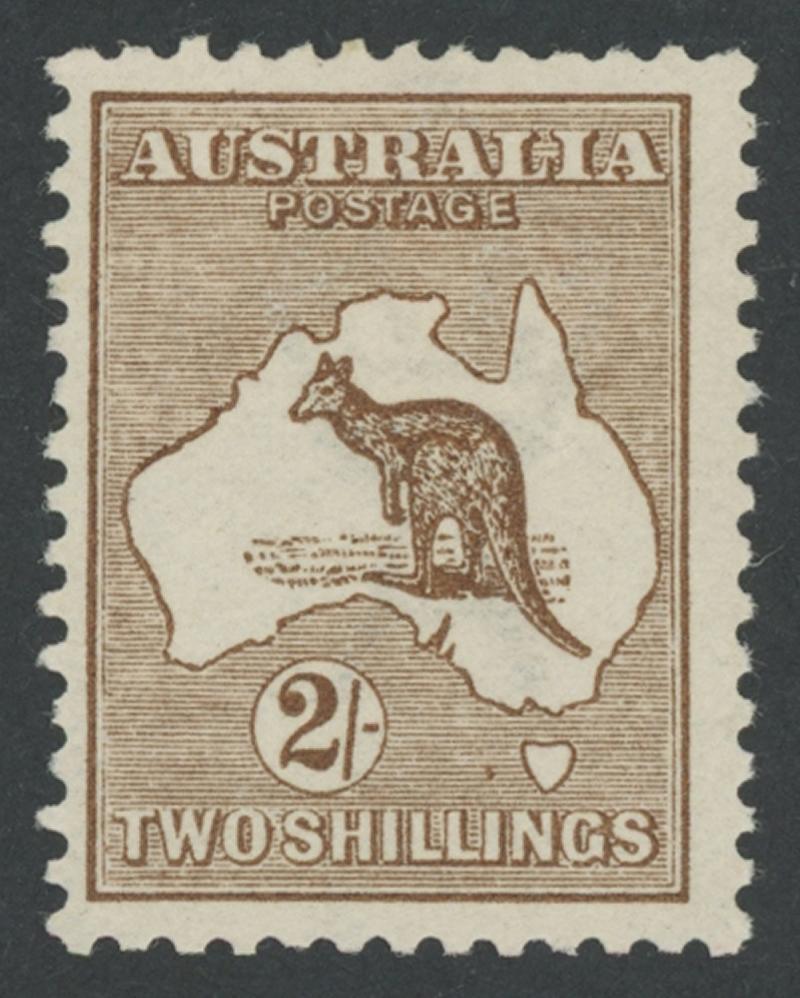 2/- dark brown ACSC 35B (SG 12 shade variant), lightly mounted, Cat $1500 (£275+ for normal). Michael Drury Certificate (2018). (Image1) (Image2)