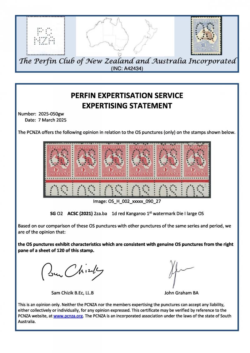 at sides), also punctured 'OS' in the margin and with small portions of the 'OS' punctures from the stamps above appearing at the top of the stamps, no gum, Cat $5000 for mounted mint. PCNZA Certificate (2025). (Image1) (Image2)