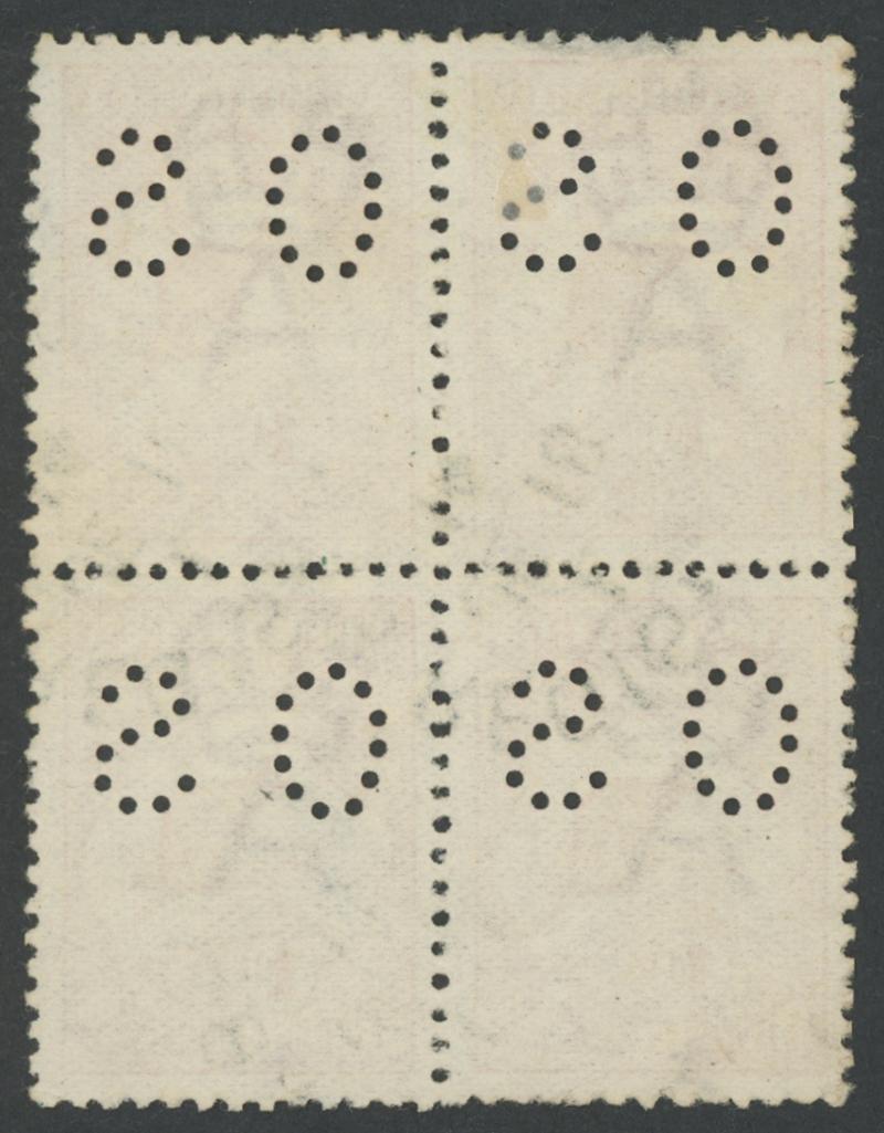1d red Die I SG O17 Plate C block of 4 the upper-right unit with Large Coloured Flaw Left of Tasmania ACSC 2(C)i [Pos L44],