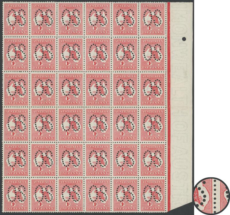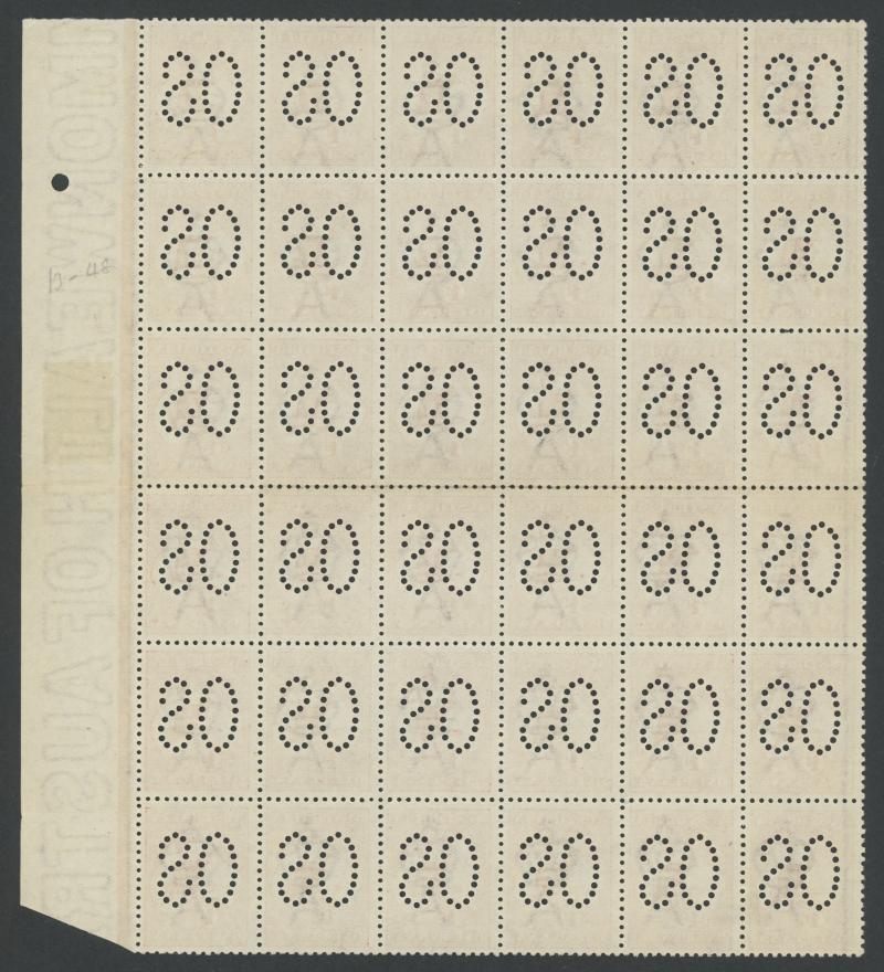 1d red Die I ACSC 2(B)bb (SG O2) marginal block of 36 (6x6) [Pos BR13-48] from the right pane of Sheet B with Right Outer Frame