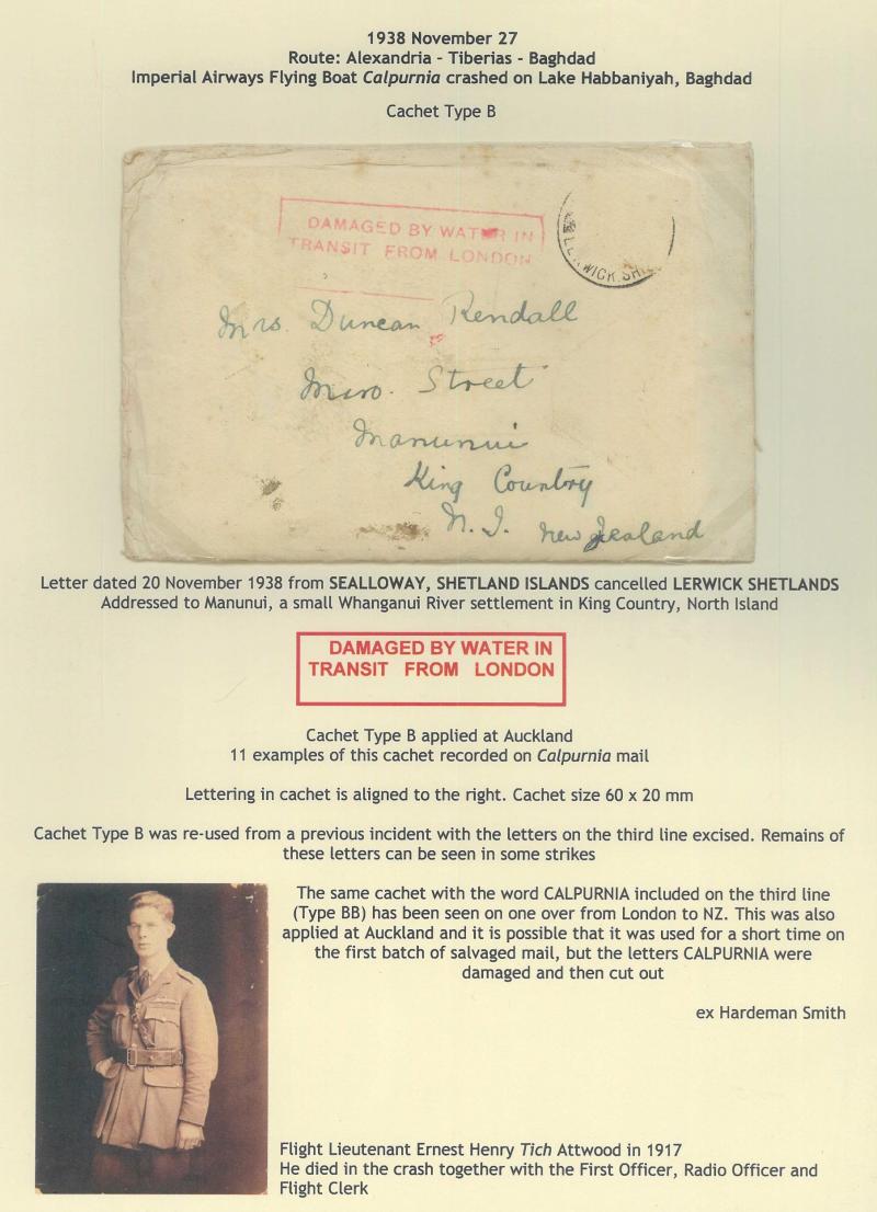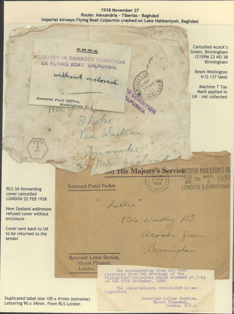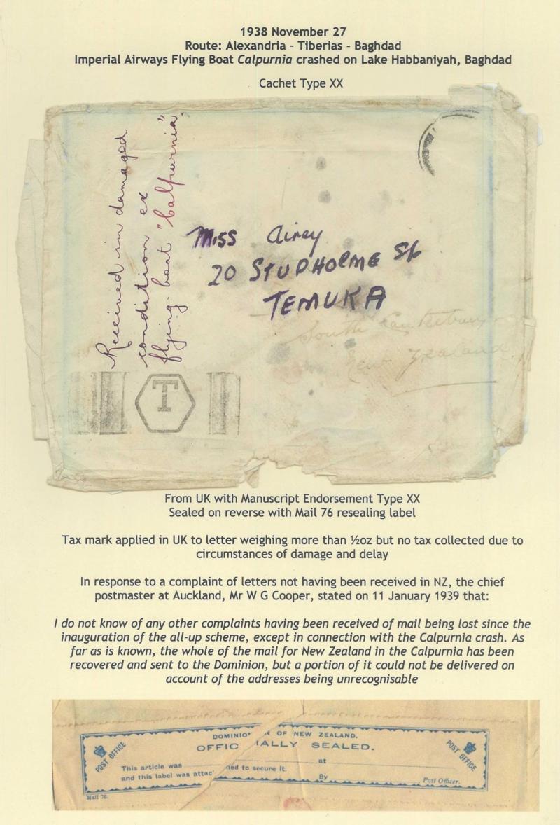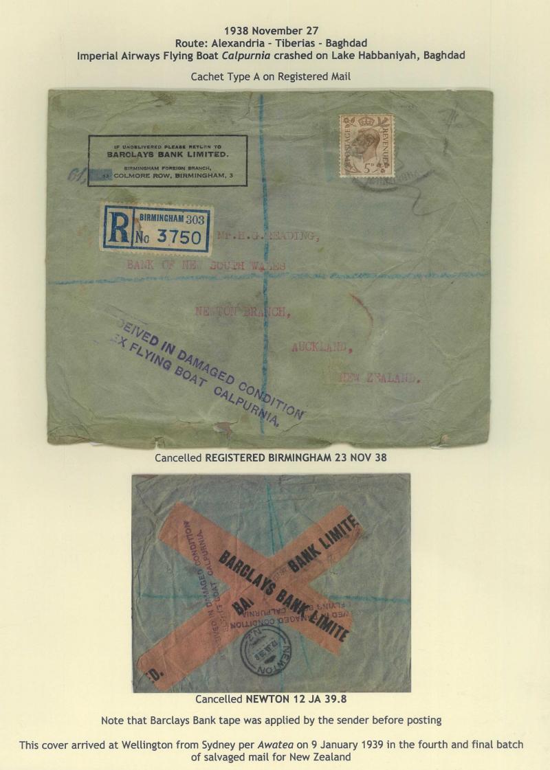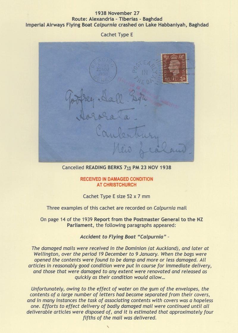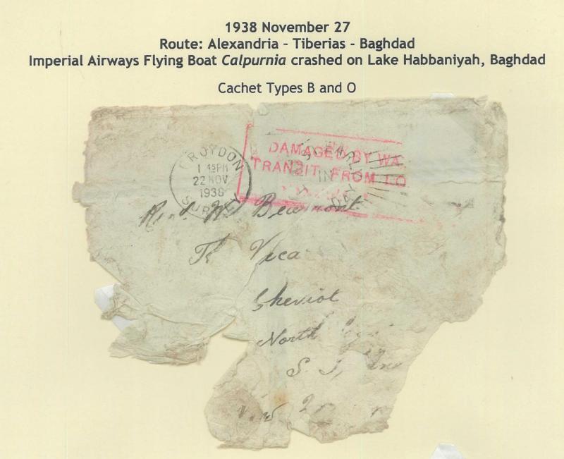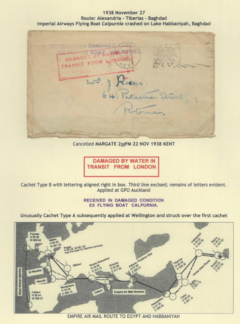 1938 (Sep) England-Australia Empire Air Mail Scheme (EAMS) service per 'Calpurnia' which crashed into Lake Habbaniyah (Iraq), with