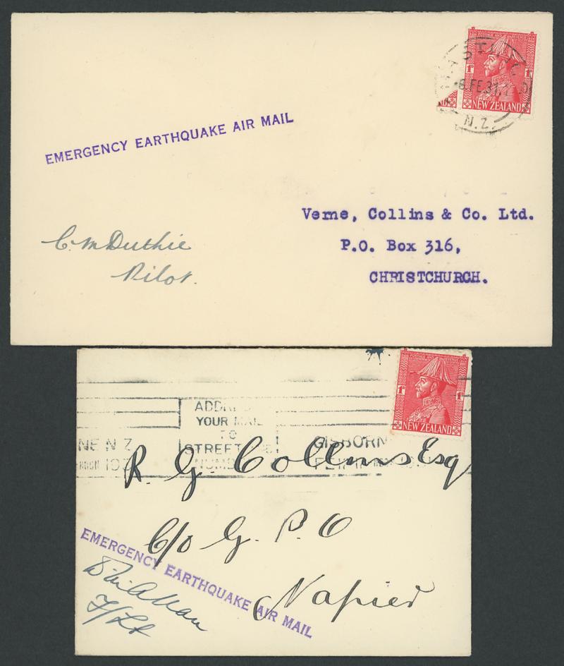 Non-philatelic mail from the Hawkes Bay or Napier Earthquake emergency airmails is very scarce. (Image1) (Image2)