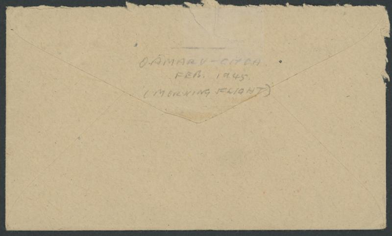 Air Force performed two return flights for each of three days 22-24.2.1945. Interestingly, they carried only mail paid at surface rates, items paid at airmail rates travelling as usual per Union Airways.