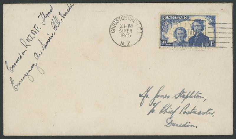 to Christchurch (possibly commercial), both signed by the pilot "AG Gerrand". Scarce. The flights were necessary after major flooding caused severe damage to roads between Napier & Gisborne.