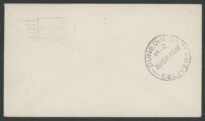 1945 (Feb 22) OHMS cover to Christchurch with 2d Whare overprinted 'Official' tied by 'OAMARU' machine carried per RNZAF, and