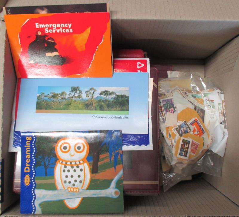albums, plenty of Australia including a small box of Decimal booklets & an array of PSEs. One for the bowerbirds. Weighs 26kg.