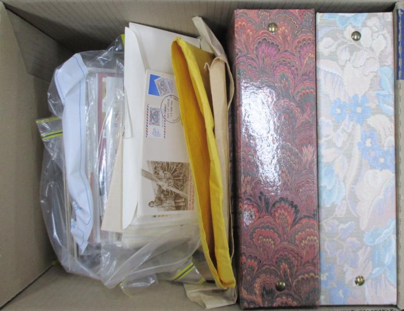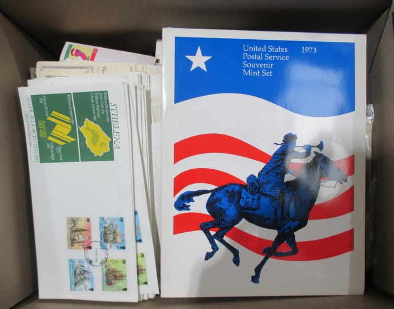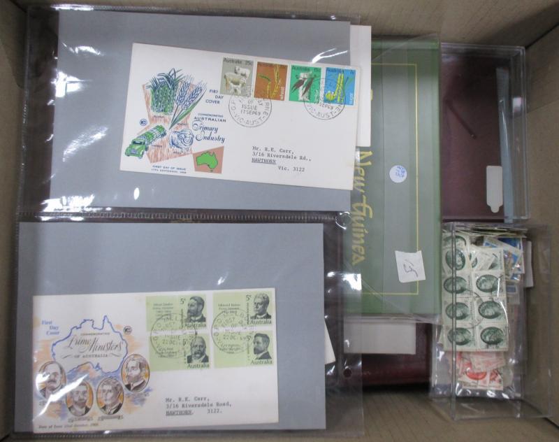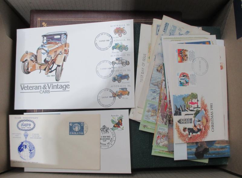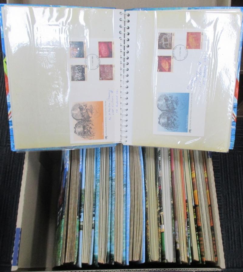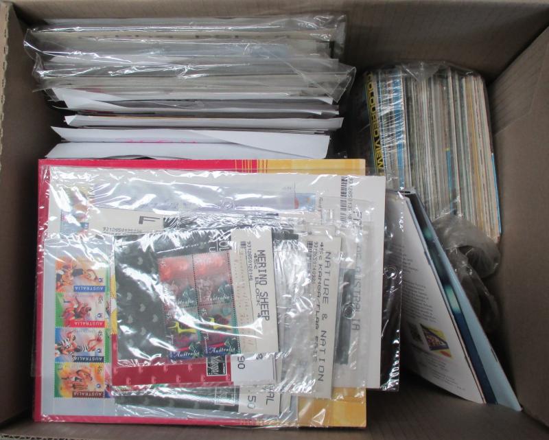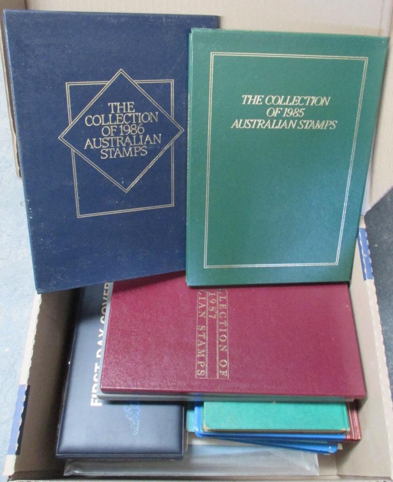Archive box including Australia 1981 & 1999 Yearbooks plus 2000 Sydney Olympic folder, New Zealand 1984 Yearbook, FDCs, worldwide