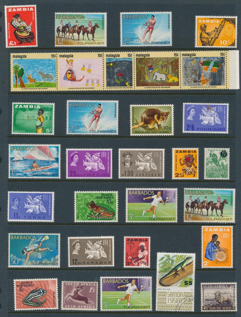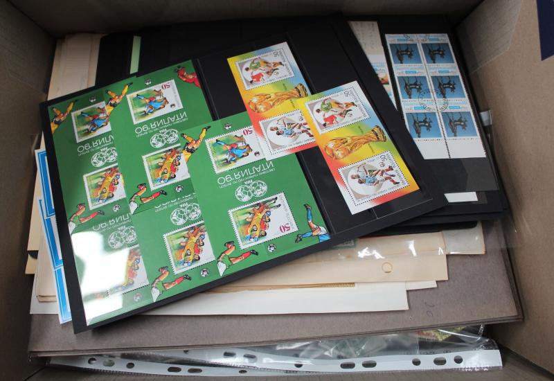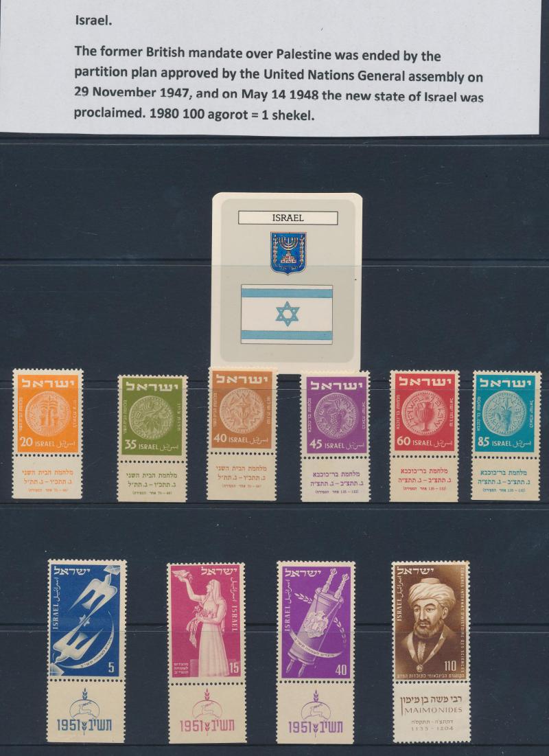 x2 10/- and 5/- Cattle, mint sheets/part-sheets from Ceylon & KUT; Israel modern mint with tabs; World FDCs with strength in Ceylon/Sri Lanka, condition variable. Weighs 22kg.
