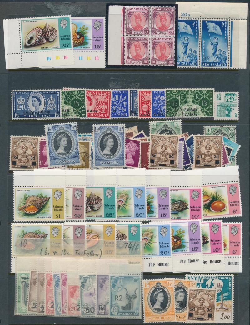 overprints, New Zealand mainly Pre-Decimal used on stocksheets, mint Health sheetlets, etc. Weighs 5kg.
