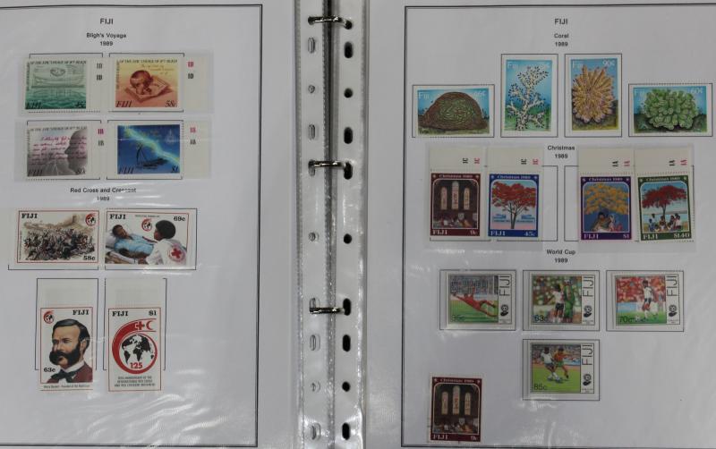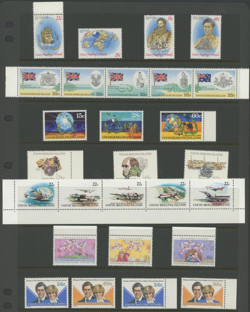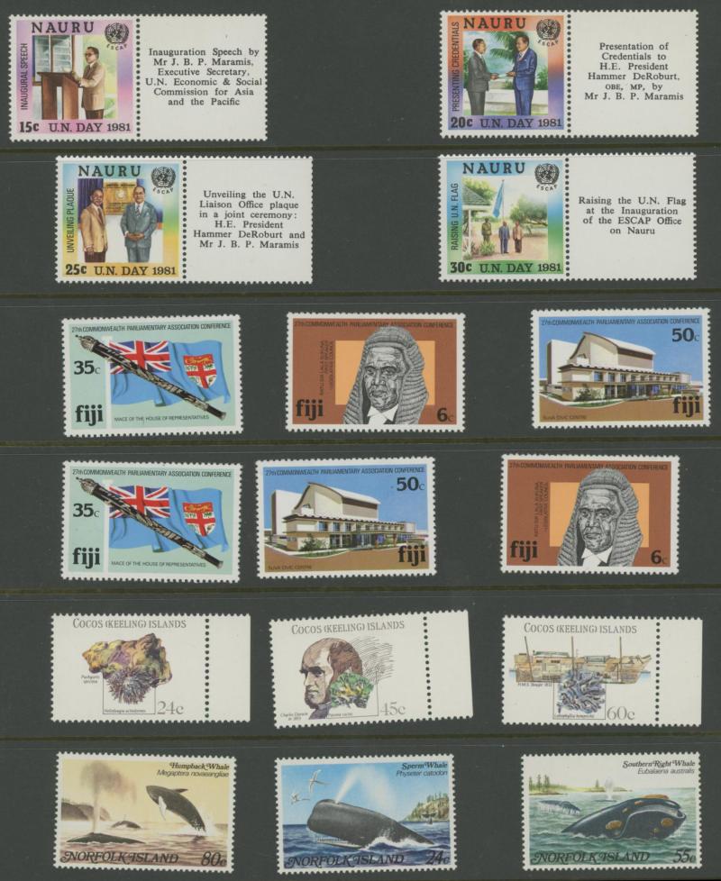 mint sets from Cocos Islands, Fiji, Nauru, Norfolk Island, PNG, etc, and basic World with 'jam labels' in stockbooks, condition variable. Weighs 15kg.