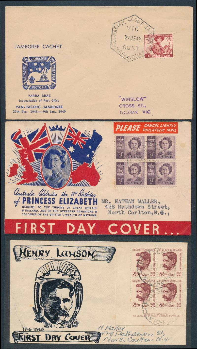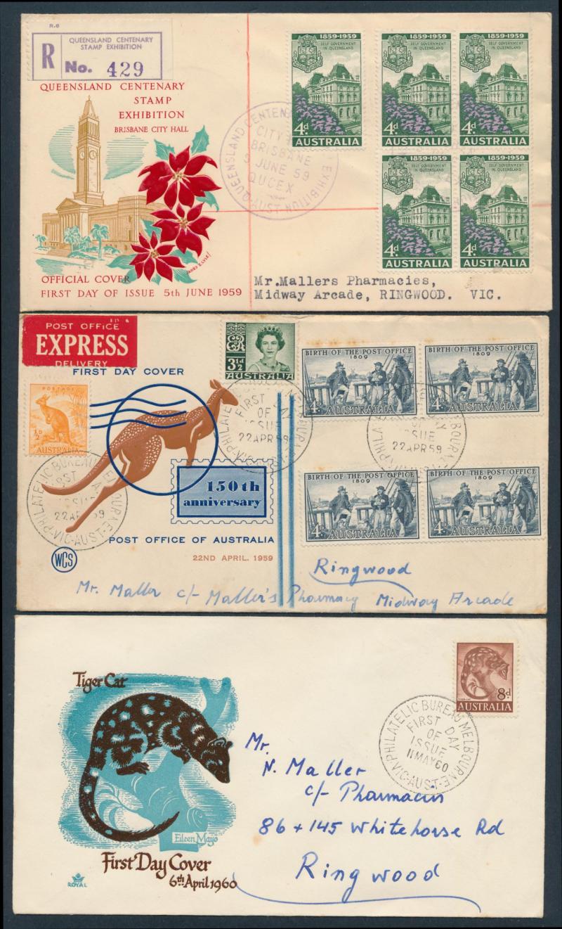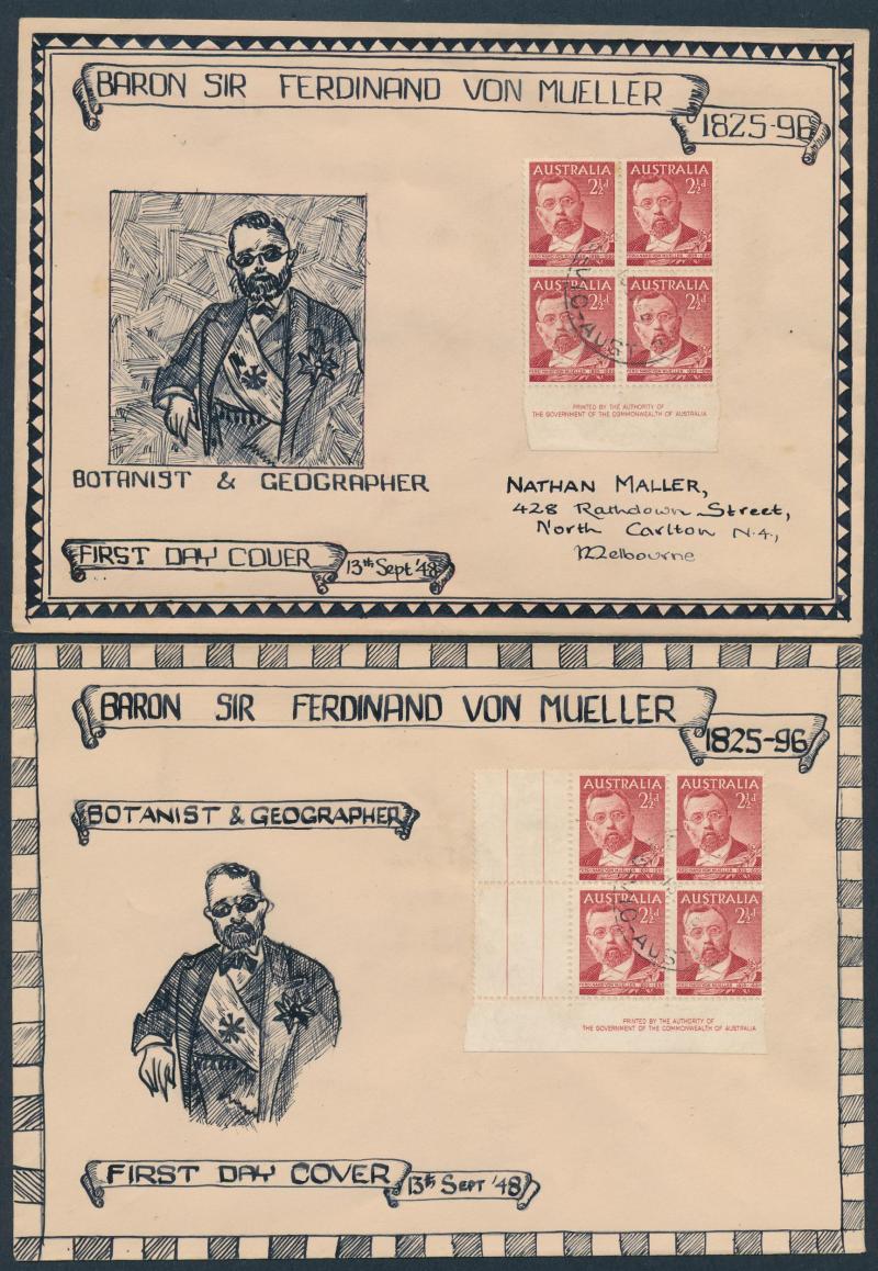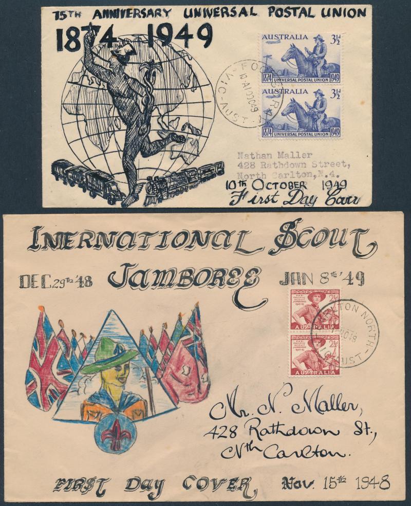 collections plus unsorted on and off paper, then a large number of Australian Decimal FDCs & PSEs in sticky photo albums plus an interesting range of early Australian FDCs including Sturt Plate Number blocks of 4 set and hand-illustrated FDCs Baron