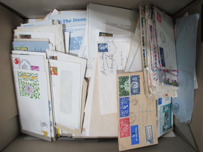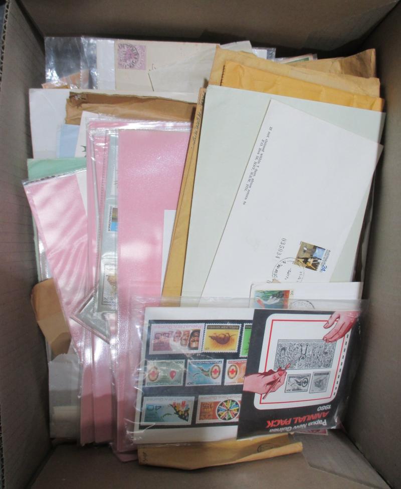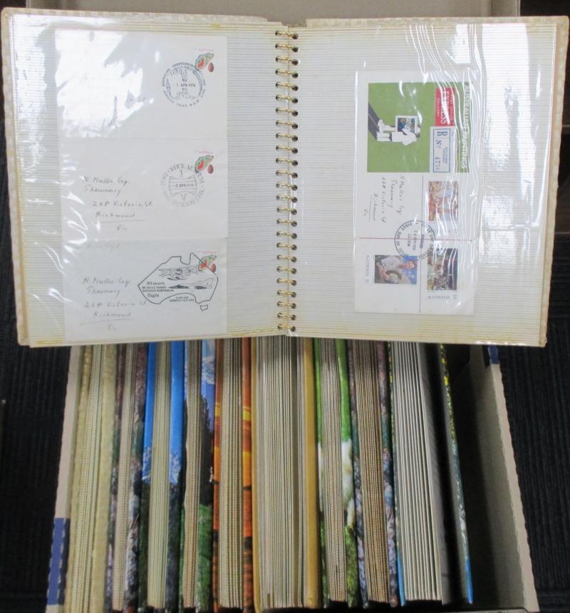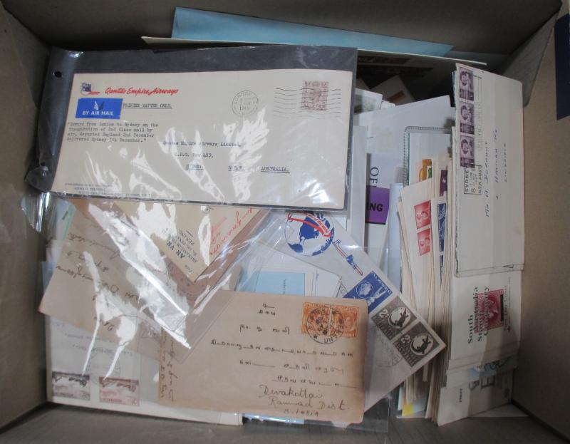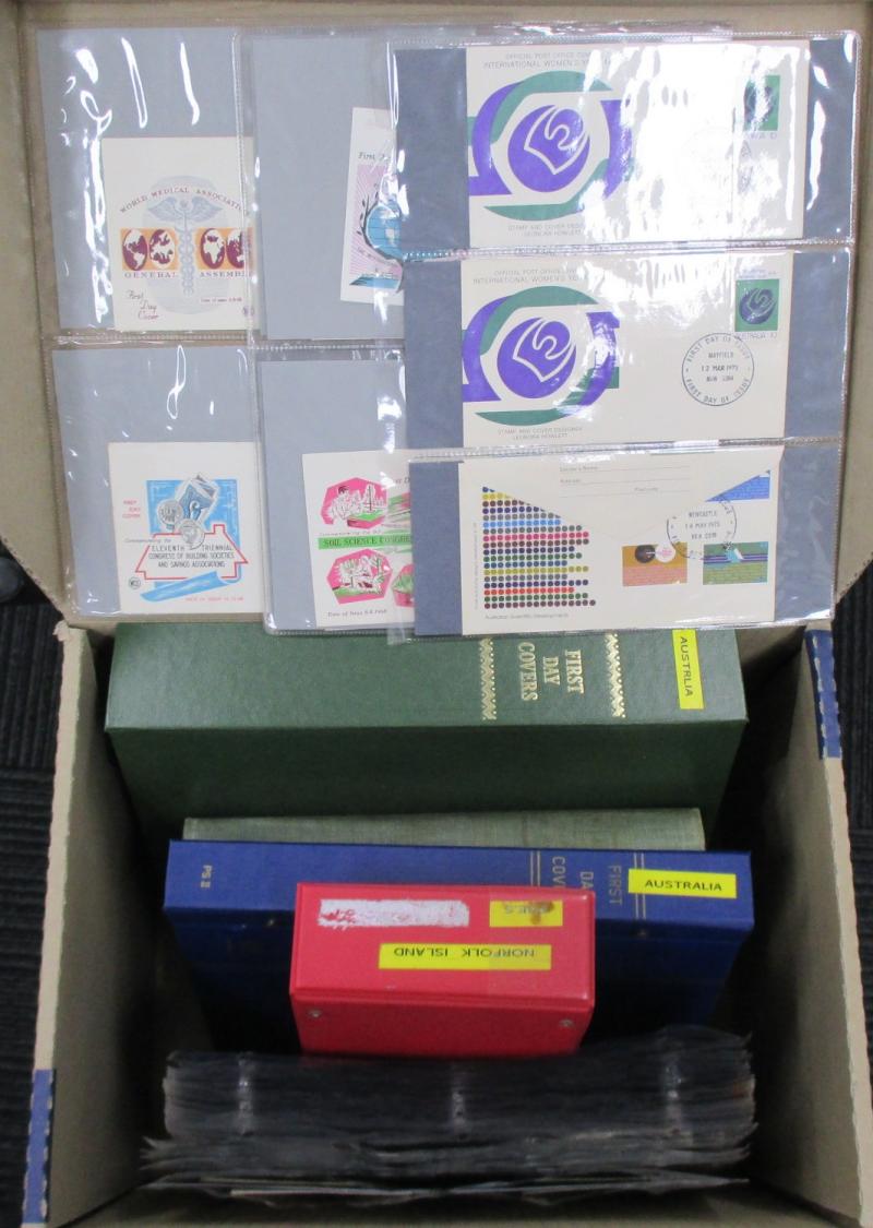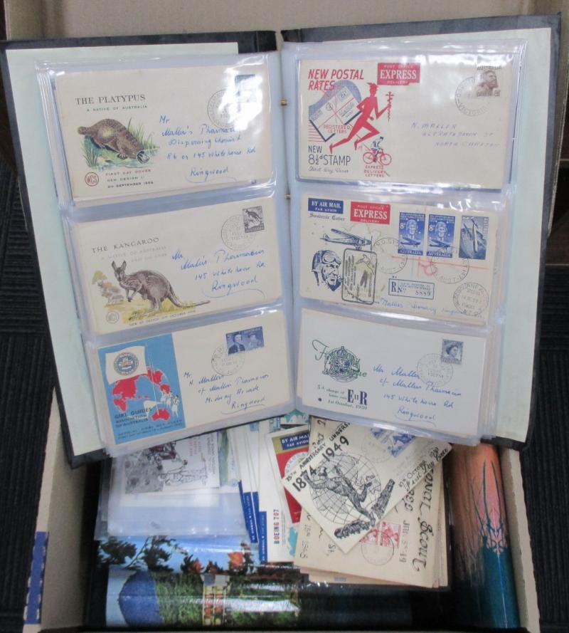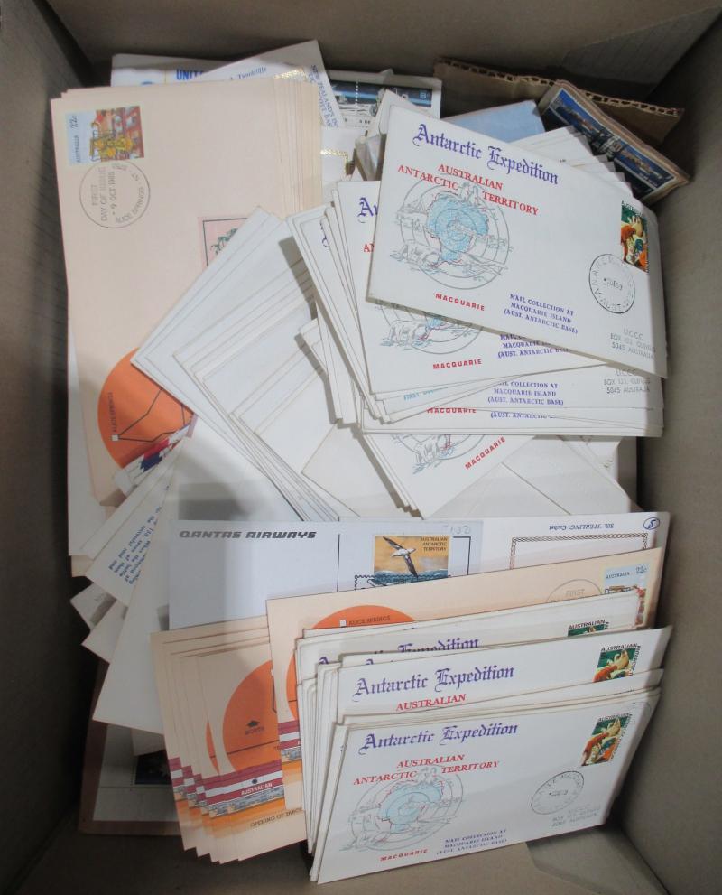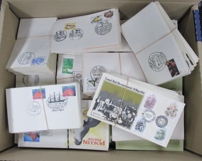 sorted into envelopes, then a large quantity of Australian FDCs & PSEs with plenty of commemorative cancels and other postmark interest. Weighs 43kg.