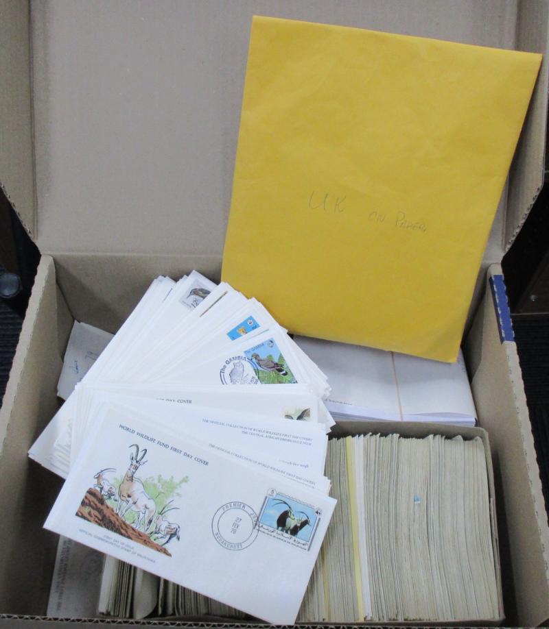 Seven archive boxes including World Wildlife Fund sets & FDCs, Australian & Worldwide used on cover, clippings & off-paper some