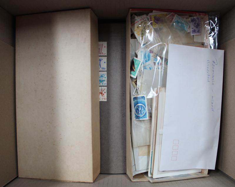 Worldwide remainders in eleven archive boxes predominantly used including Australia, Great Britain, USA with some mint packs and