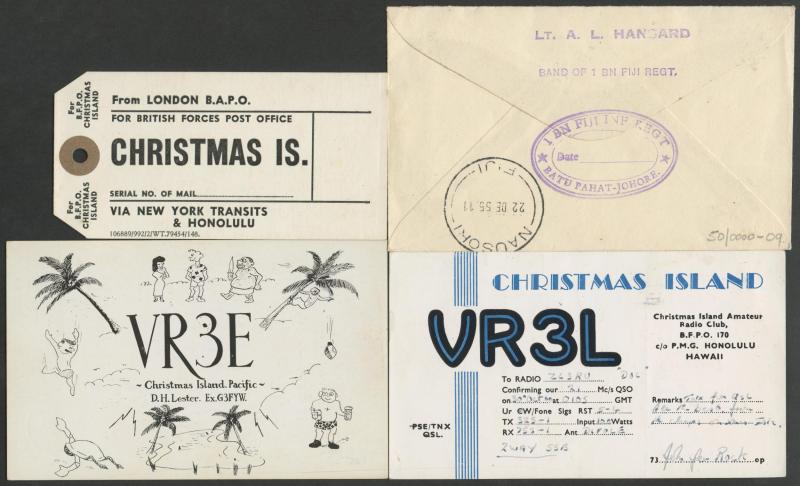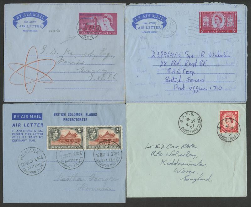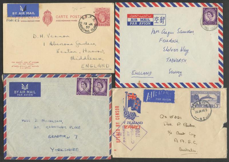 mail including several from British Forces on Christmas Island (one at 6d double-rate, and one a very scarce use of formular Forces Letter to Australia via Hong Kong!) and one scarce inwards cover, private aerogramme from a nurse at the Barakoma