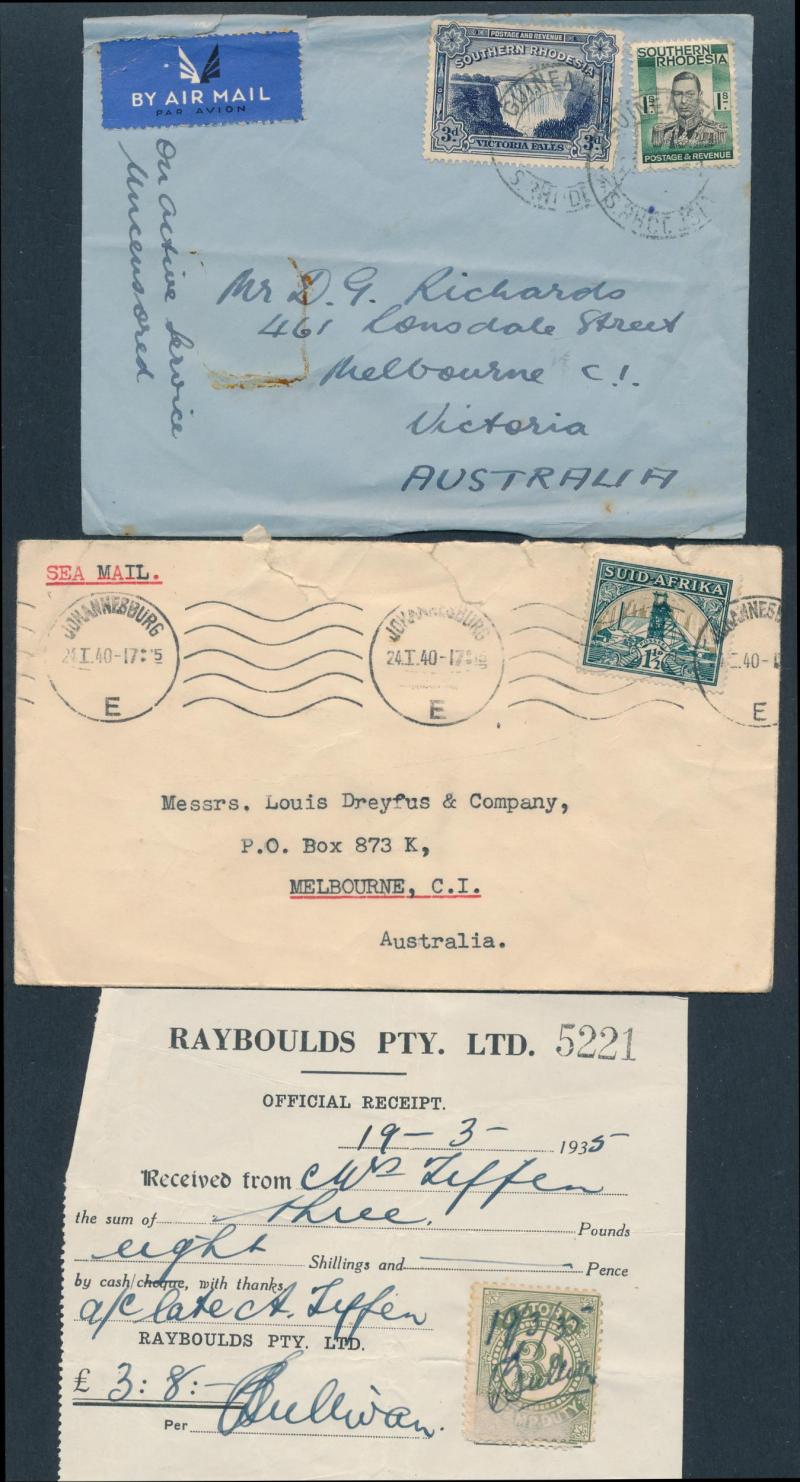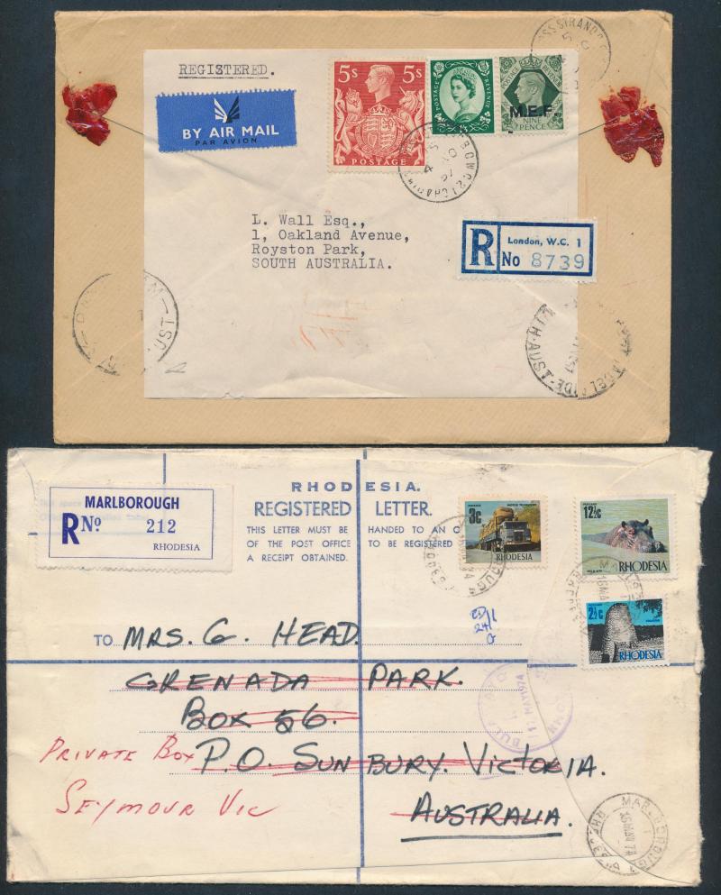 COVERS: Modest postal history group including China three 1920s items to New Zealand, WWII Southern Rhodesia airmail to Victoria,
