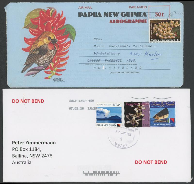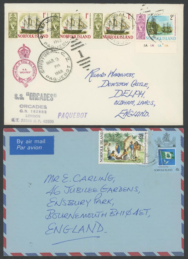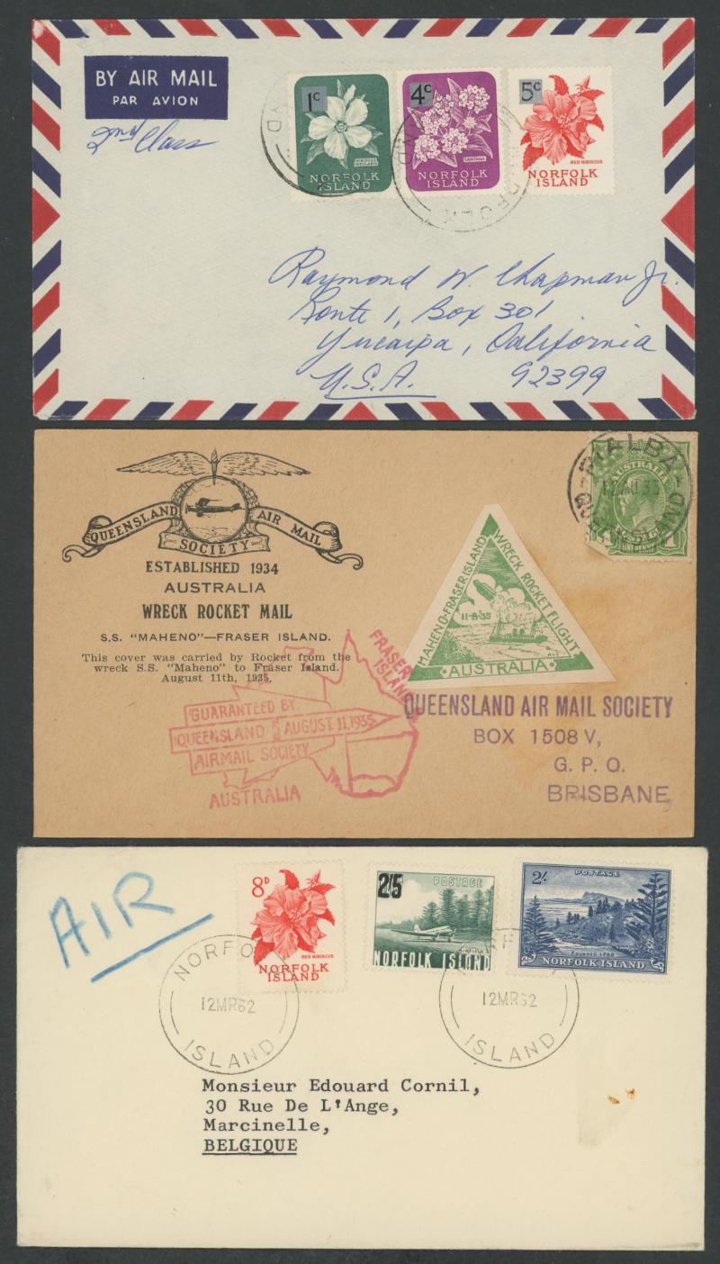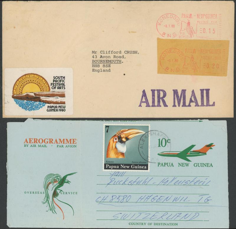 Norfolk Island mostly philatelic covers that have actually been through the mail; Papua New Guinea many PPS Cover Service registereds including with 'RELIEF' cancels, a dozen commercially used aerogrammes, a bundle of South Pacific Post wrappers with