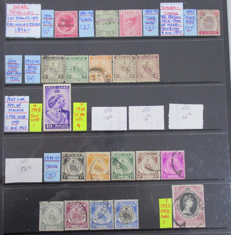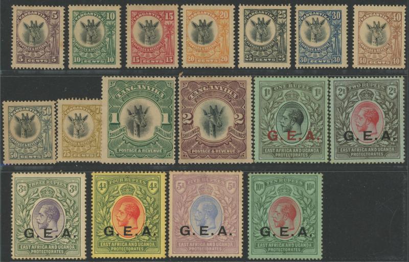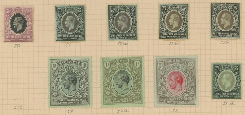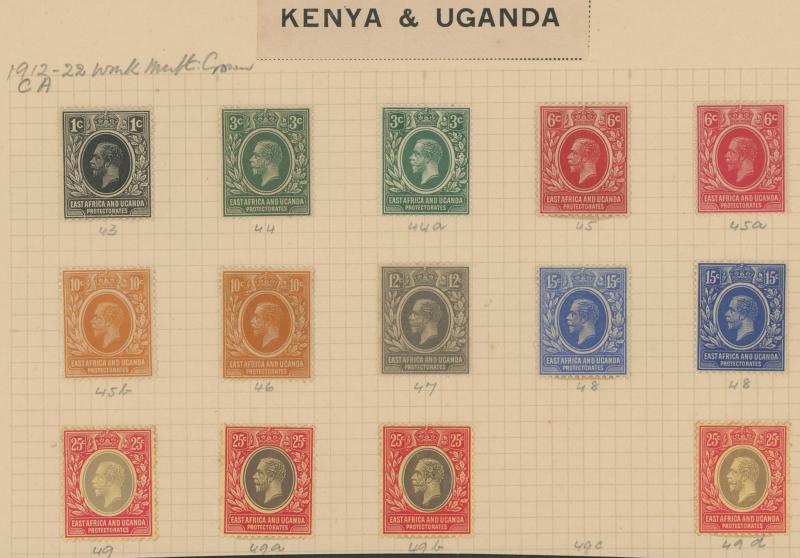 British East Africa on India QV to 5r, Kuwait SG 1-51 apparently complete, Straits KGV 1936-37 to $5, Tanganyika 'GEA' Overprints to 20r, etc, condition is very mixed with lots of toning & desiccation, catalogue value just for the less affected