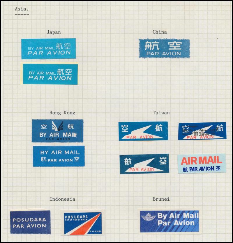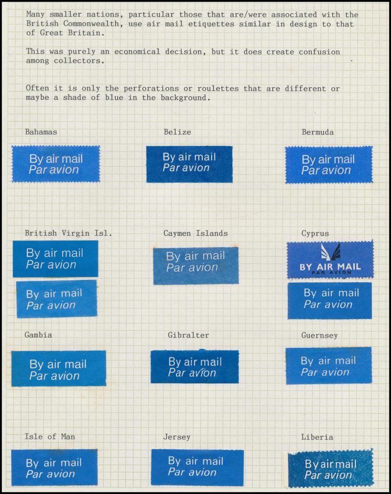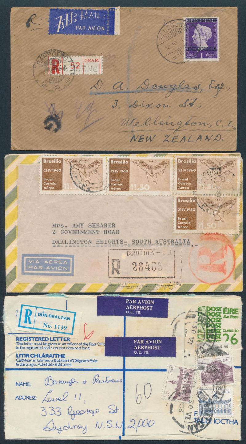 Barbados, Brazil, Channel Islands, Colombia, Cuba, French Polynesia, Guatemala, Iceland, Iran, Ireland, Israel, Kuwait, Moldova, Norway, Poland, Portuguese Timor, Rhodesia, Rumania, Singapore, UAE, etc, some Registration Envelope usages & several
