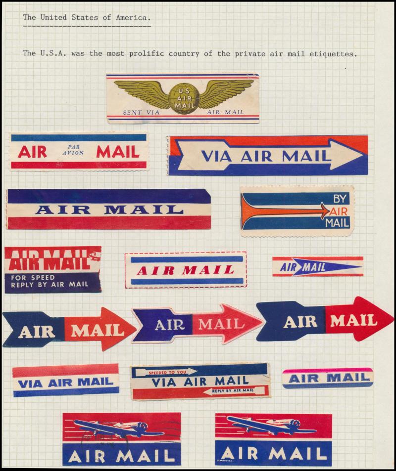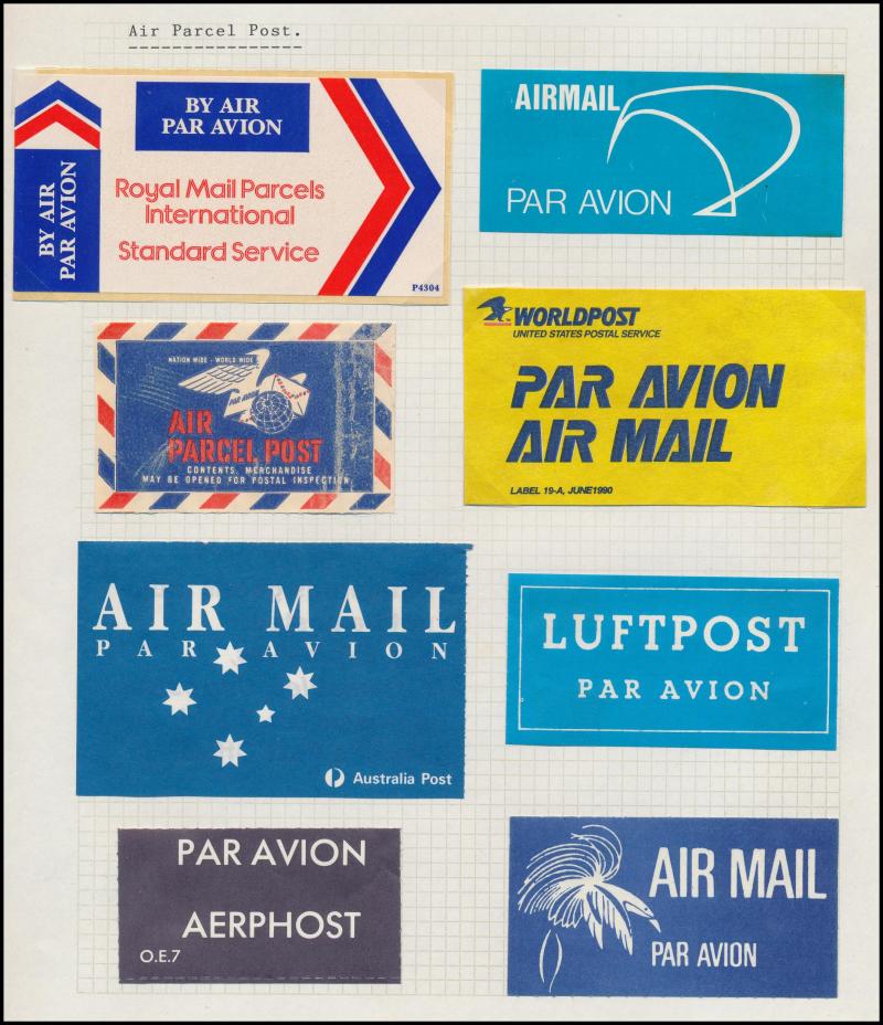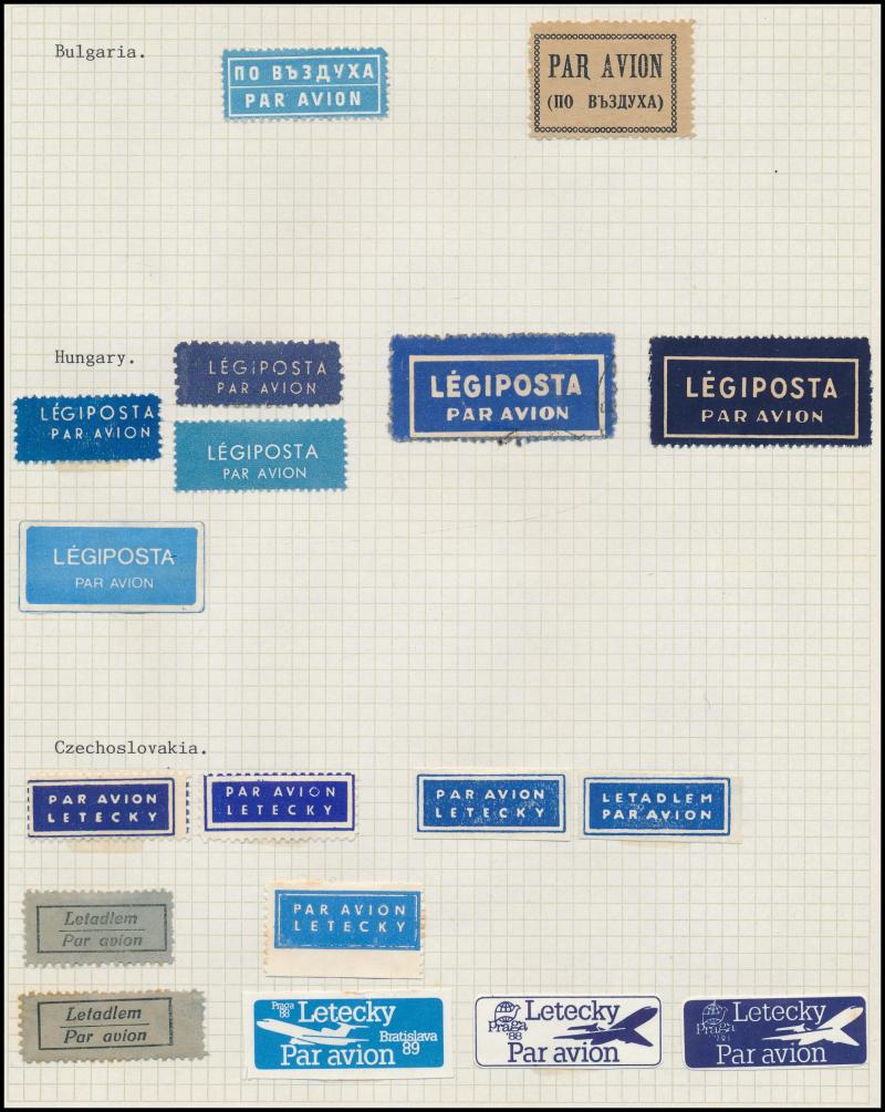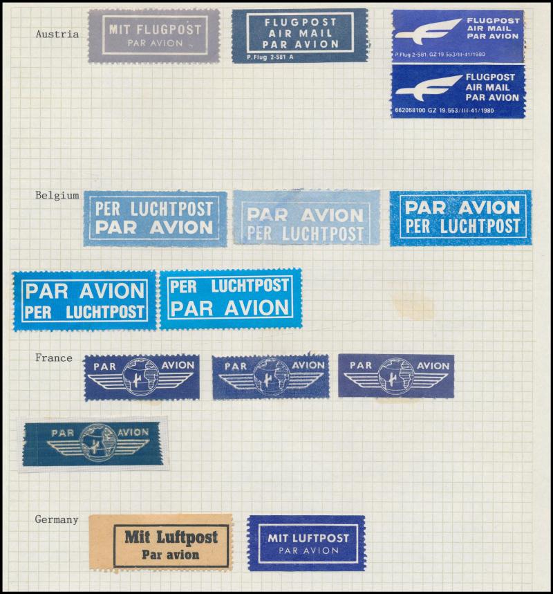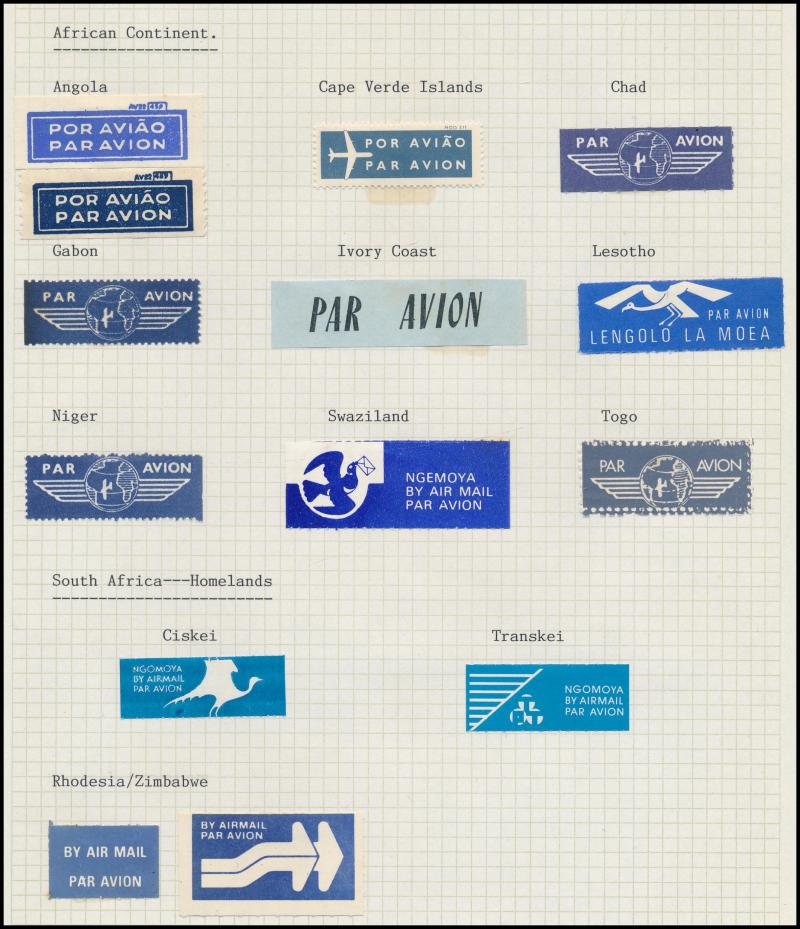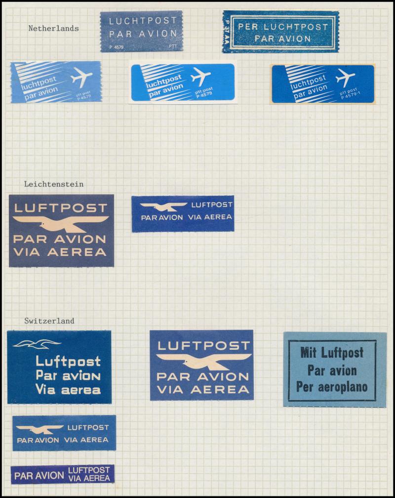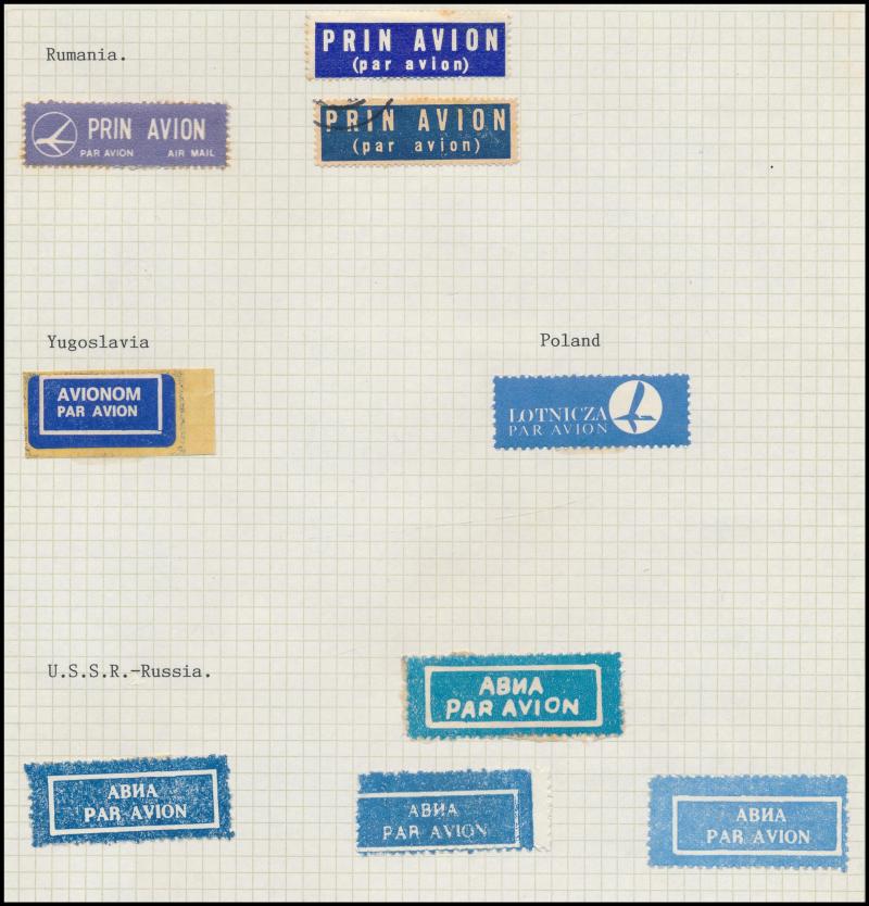 COVERS: World airmail etiquettes/labels partly mounted/annotated collection with numerous unusual types & from small countries,