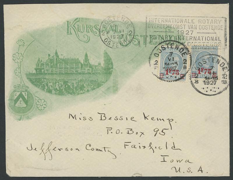 THEMATICS: Rotary International - Belgium 1927 Rotary International Convention illustrated envelope of the 'Kursall Ostende' (=