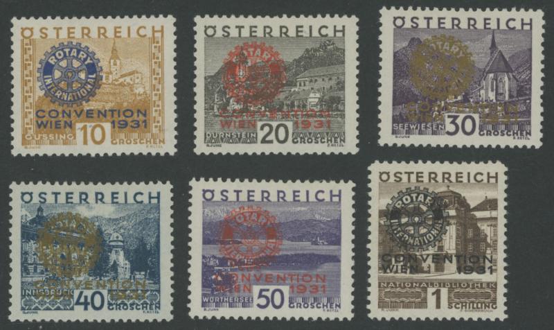 THEMATICS: Rotary International - Austria 1931 Rotary Convention Overprints set, very lightly mounted, and the set tied to separate