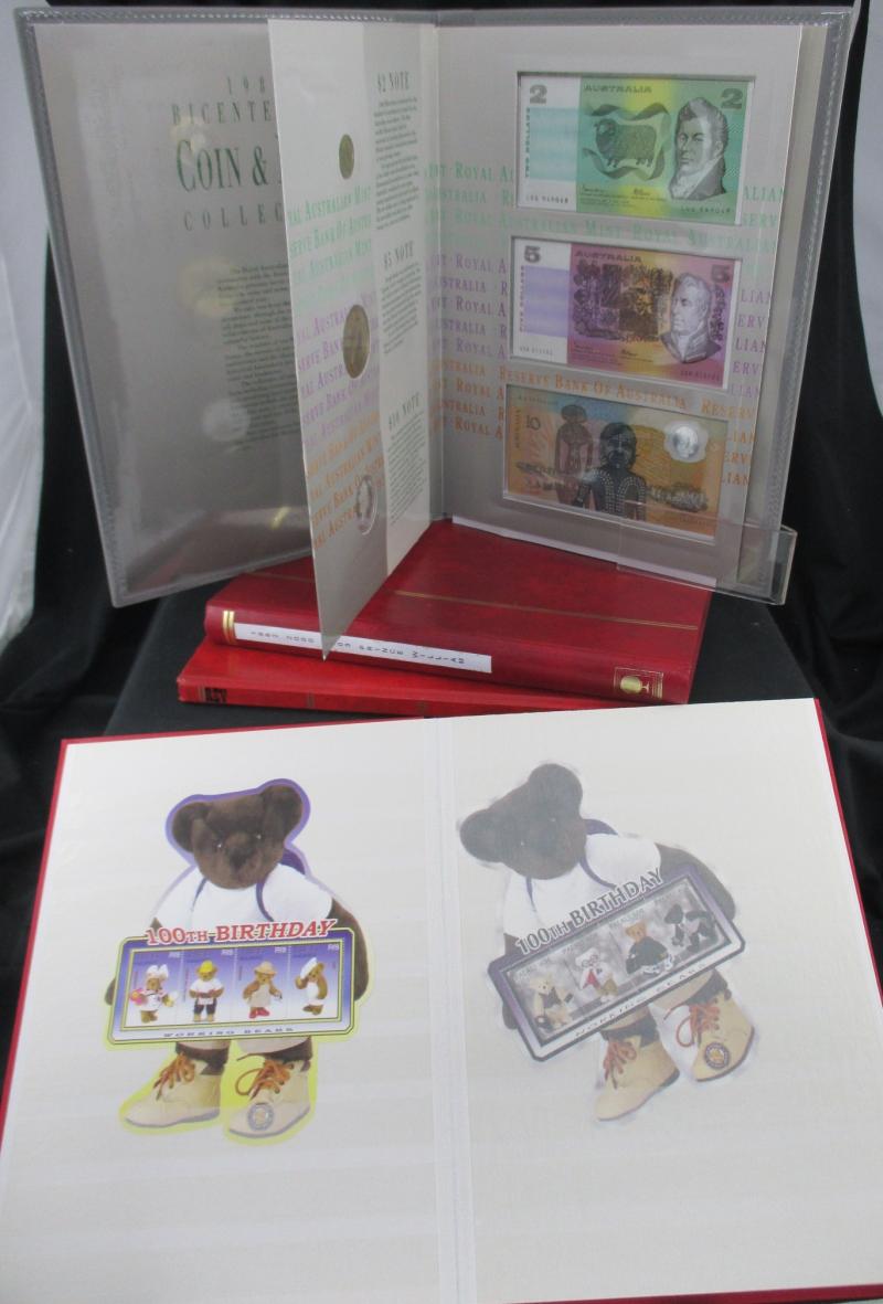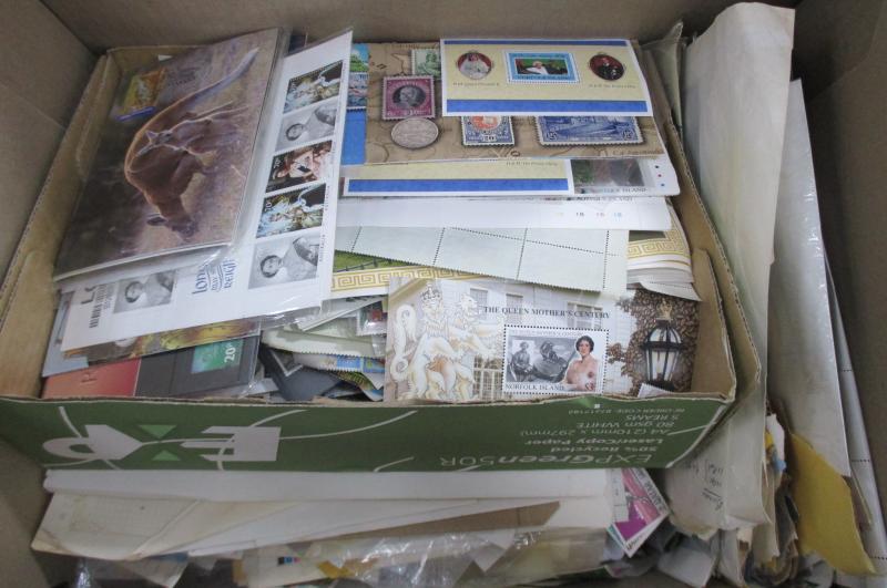 includes British Commonwealth sets, blocks and sheets and miscellaneous unsorted, plus 1988 RAM Bicentennial Coin and Note collection, condition generally fine. Weighs 20kg.