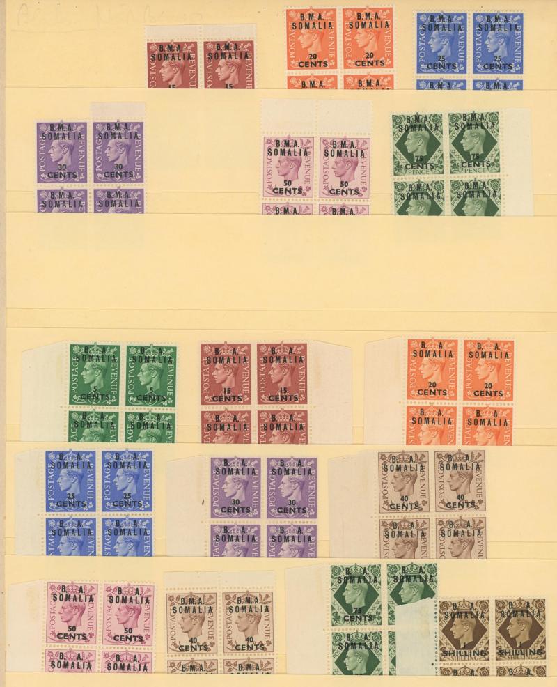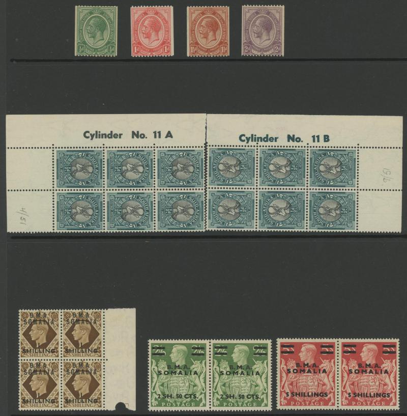stated to be SG 119 *) and 12/6d x6 (one with Brandon Certificate as SG 120 **; tropicalised gum), Bahamas 1948 Tercentenary set *, Bechuanaland 1938 KGVI Cattle set *, 'BMA/SOMALIA' 2/6d & 5/- pairs **, Cayman Islands mint collection with KGV Heads