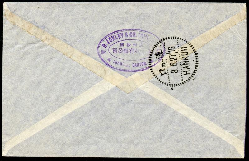 'VICTORIA/2JU/38/HONG KONG' cds, '.../3.6.27/HANKOW' arrival backstamp. (Image1) (Image2)
