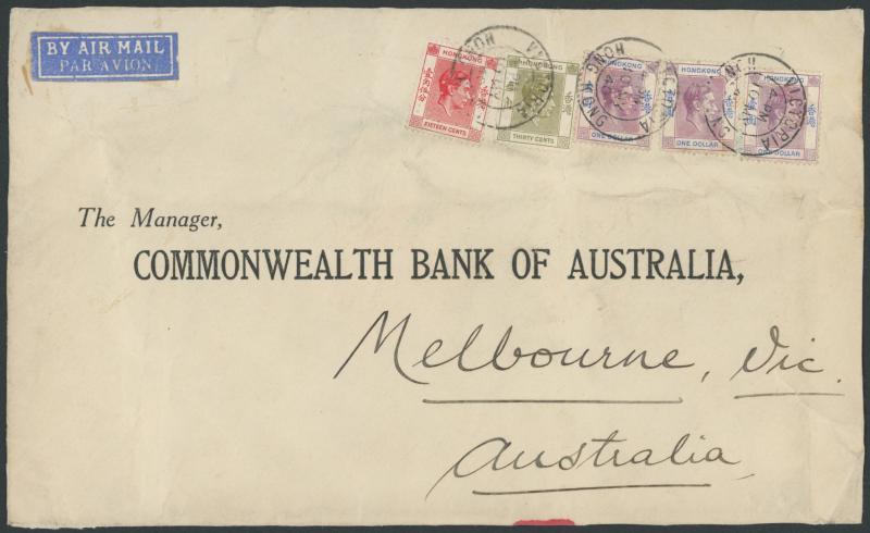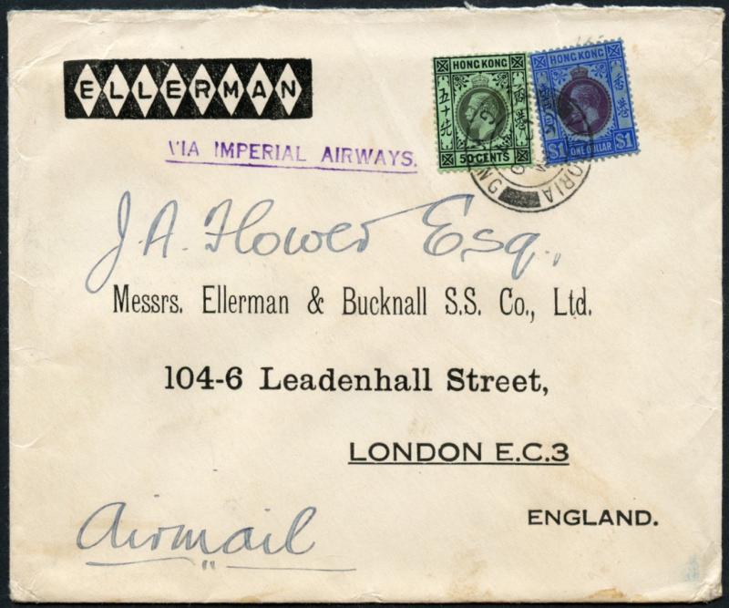 on face and KGV 50c & $1 tied 'VICTORIA/12NO/37/HONG KONG' cds paying triple 50c per ½oz airmail rate, a couple of minor blemishes.