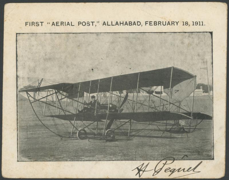 1911 First Aerial Post postcard (161x128mm) of Henri Pequet's biplane signed below the view by the pilot "HPequet", with KEVII ½a