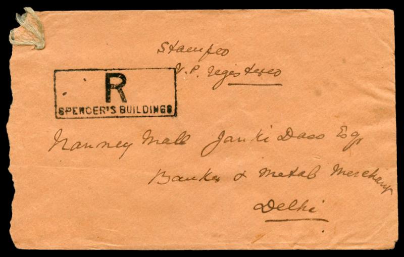 1900 (Oct 18) cover to Delhi endorsed "Stamped/VP Registered" with string tie at upper-left where attached to goods parcel, QV ½a &