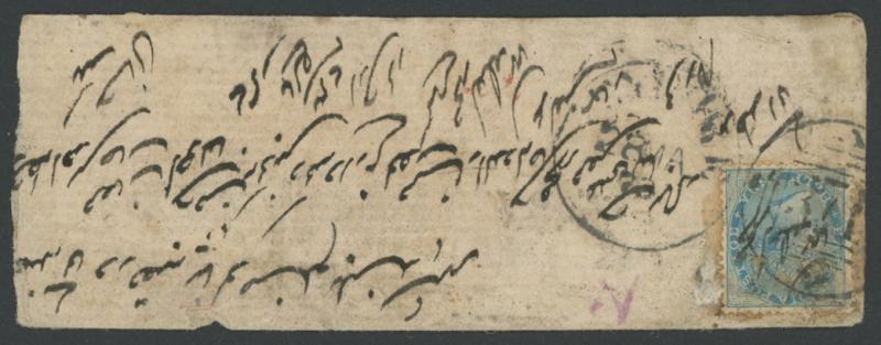 1873 native envelope from Rajasthan to Bulandshahr (Uttar Pradesh) with East India QV ½a blue tied by Jaipur '371' duplex cancel,