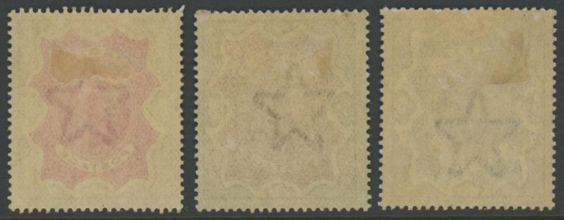 1895 QV High Values 2r carmine & yellow-brown, 3r brown & green, and 5r ultramarine & violet SG 107-109, fresh colours,