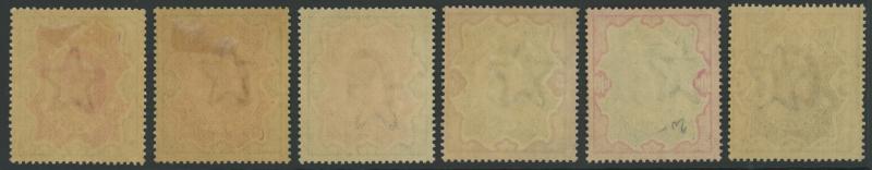 green & carmine, and 15r blue & olive-brown SG 138, 140-141 & 143-146, fresh colours, centring variable, lightly mounted (5r & 15r) or with small hinge remainders, Cat £1540. (6) (Image1) (Image2)