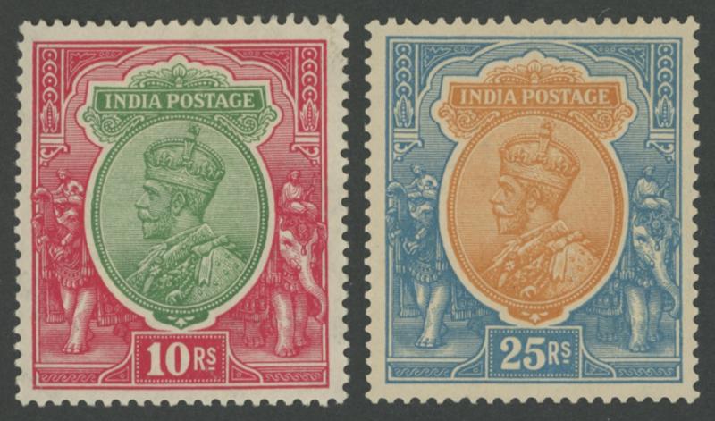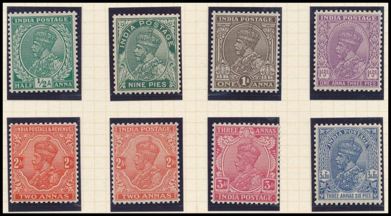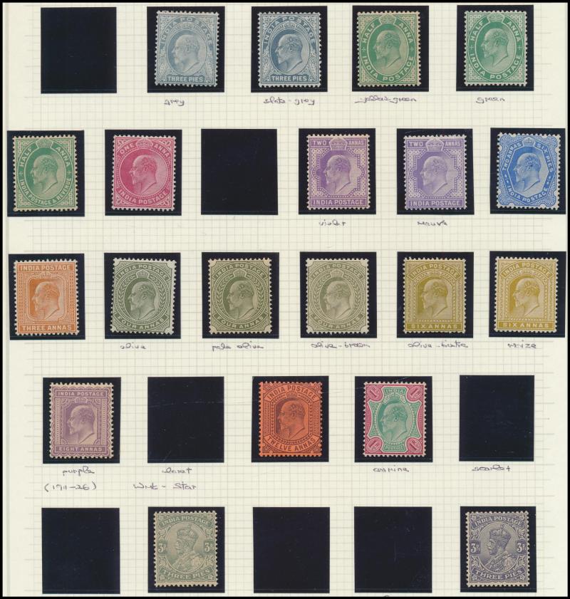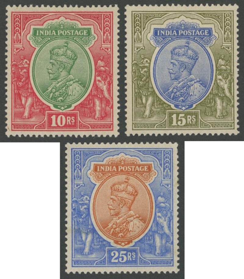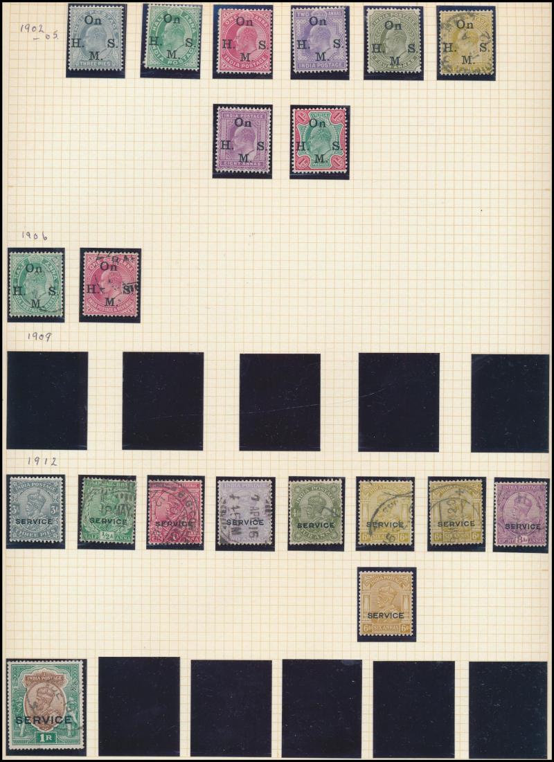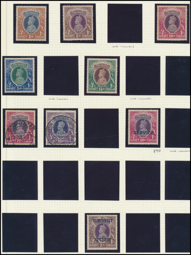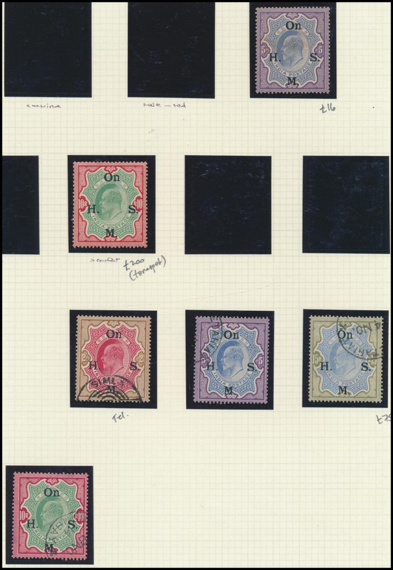 Coronation cancels), 1902-11 KEVII Heads range to 1r * plus 10r & 15r used and Officials 10r * (tonespot), 10r & 15r used, 'ONE RUPEE' Surcharges (both) * plus 'TWO RUPEES' used, 1911-23 KGV Heads Single Star Wmk range to 12a, 1926-33 KGV Heads Nasik