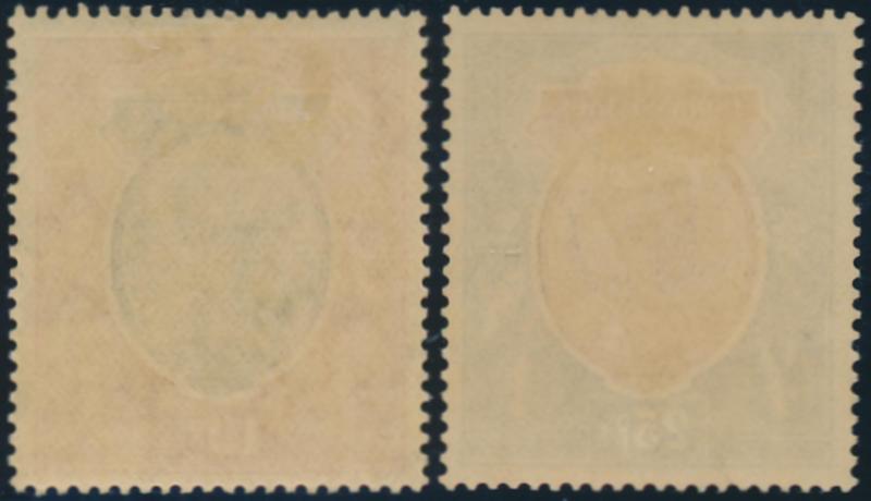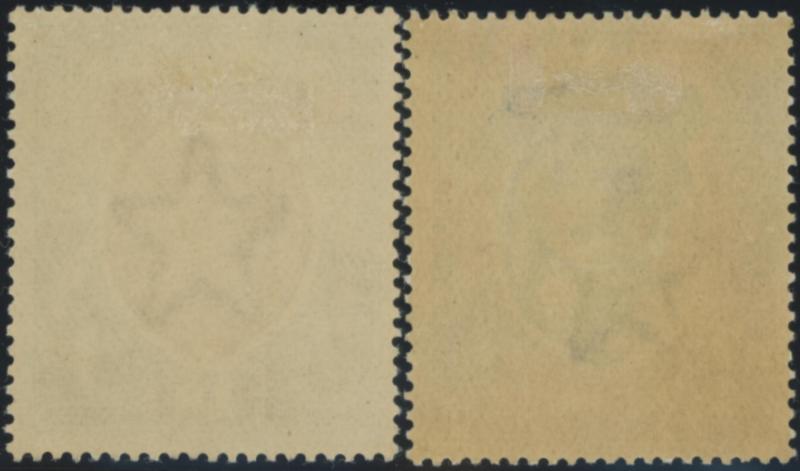 1926-33 KGV Definitives Multiple Stars Watermark 1r chocolate & green, 2r carmine & orange with the Watermark Inverted, 5r