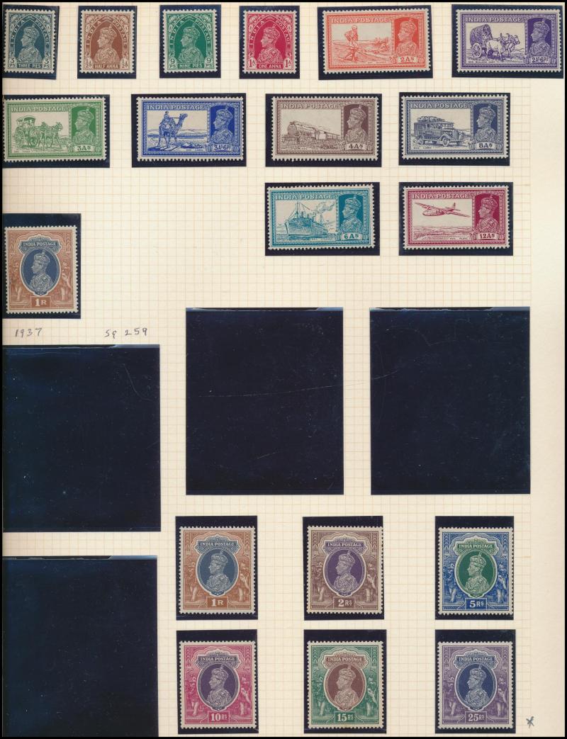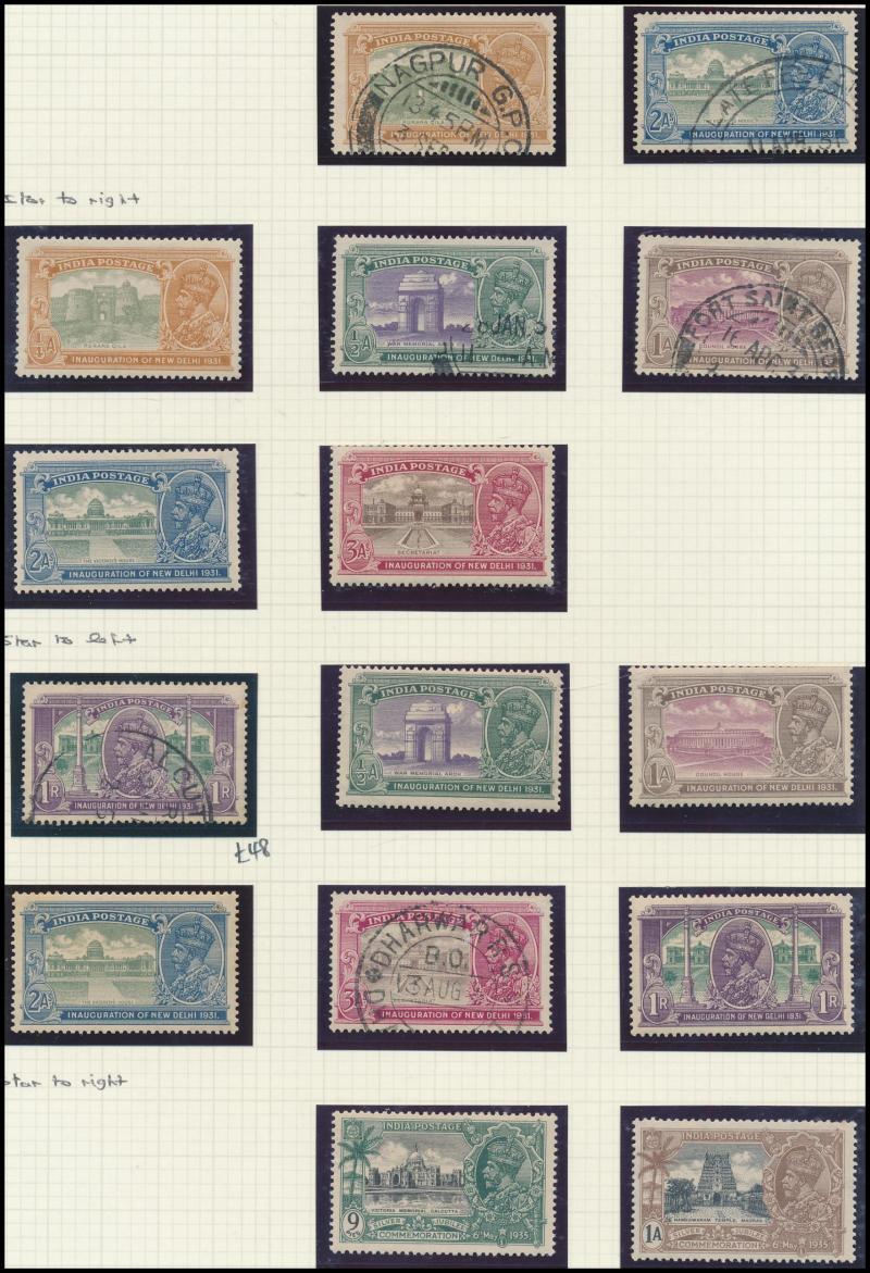 Printing 25r used, 1929 Airmails set, 1931 New Dehli set * plus 1r used, 1935 Silver Jubilee set, 1937-40 KGVI Definitives set to 15r * plus 15r & 25r used, 1948 Gandhi 10r used, 1949-52 Pictorials set including both shades of the 10r, also