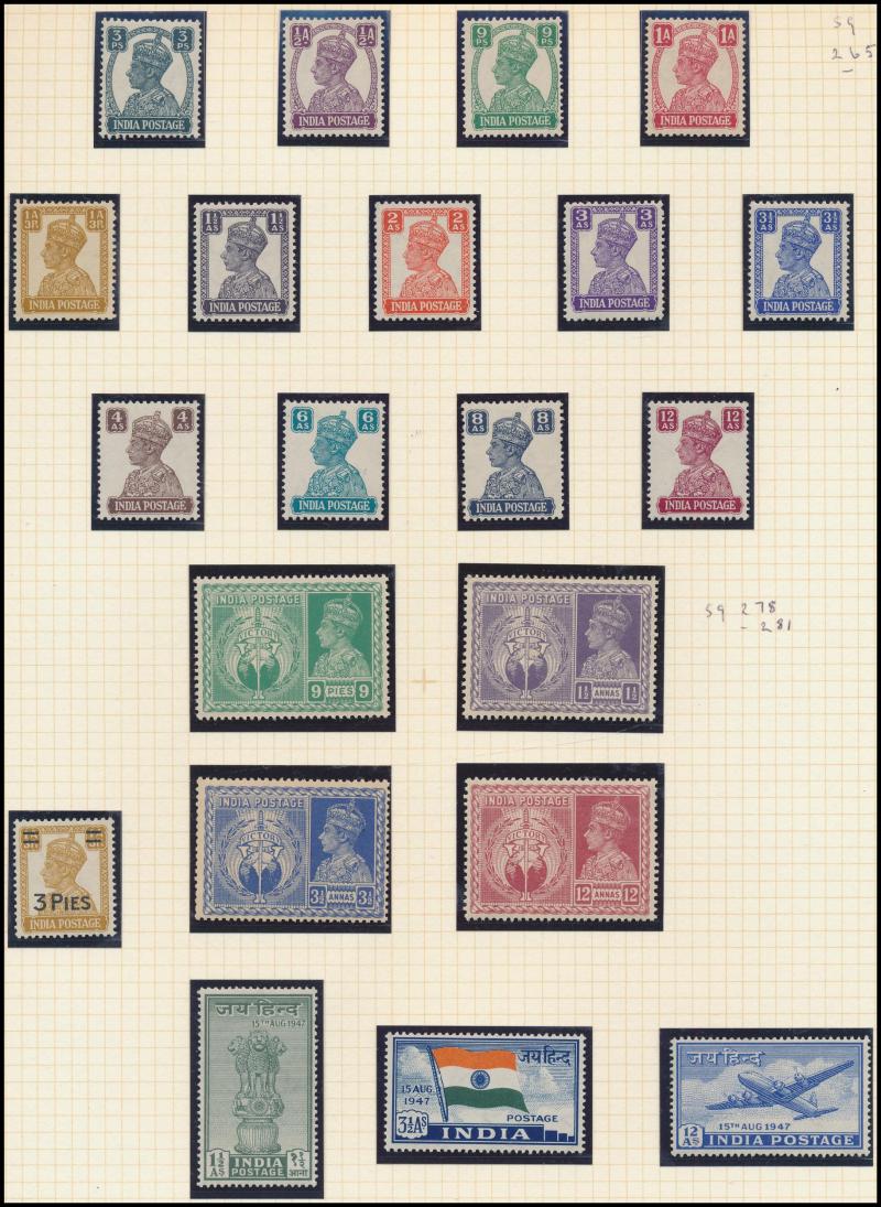& 1935 Silver Jubilee sets *, 1937-40 KGVI set *, then reasonably complete mostly unmounted to (ex 1949 Pictorials 10r & Gandhi set), condition of the earlies quite variable then increasingly fine to very fine, Cat £4000+.