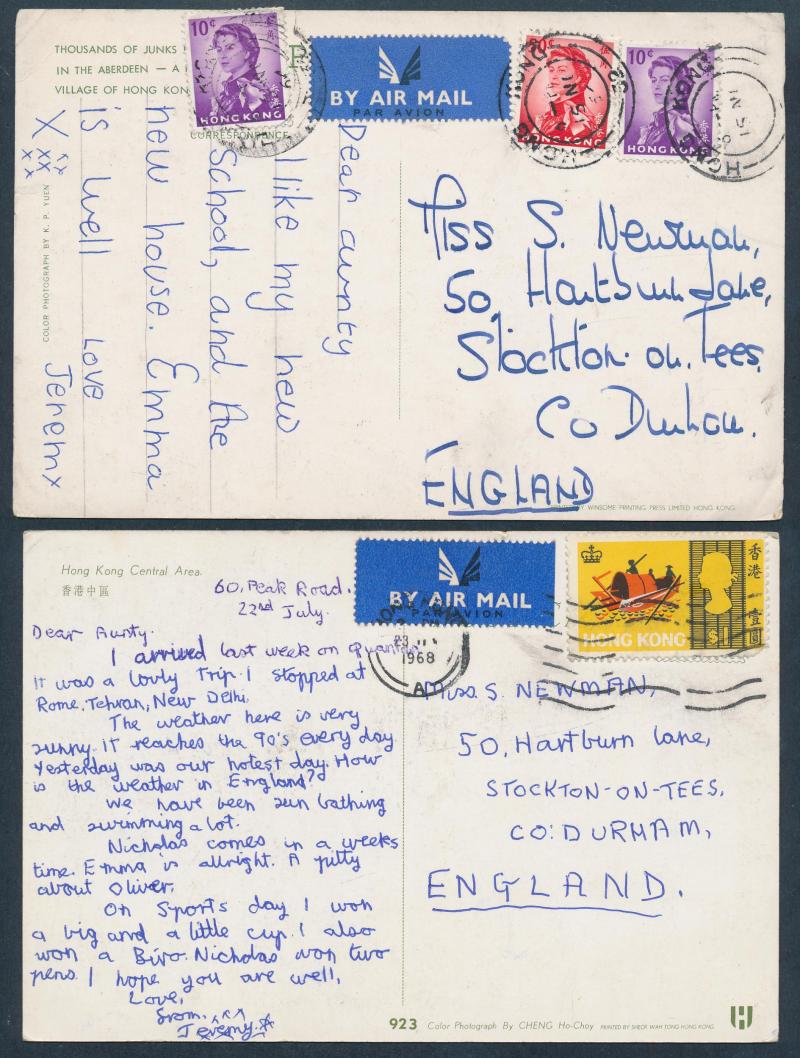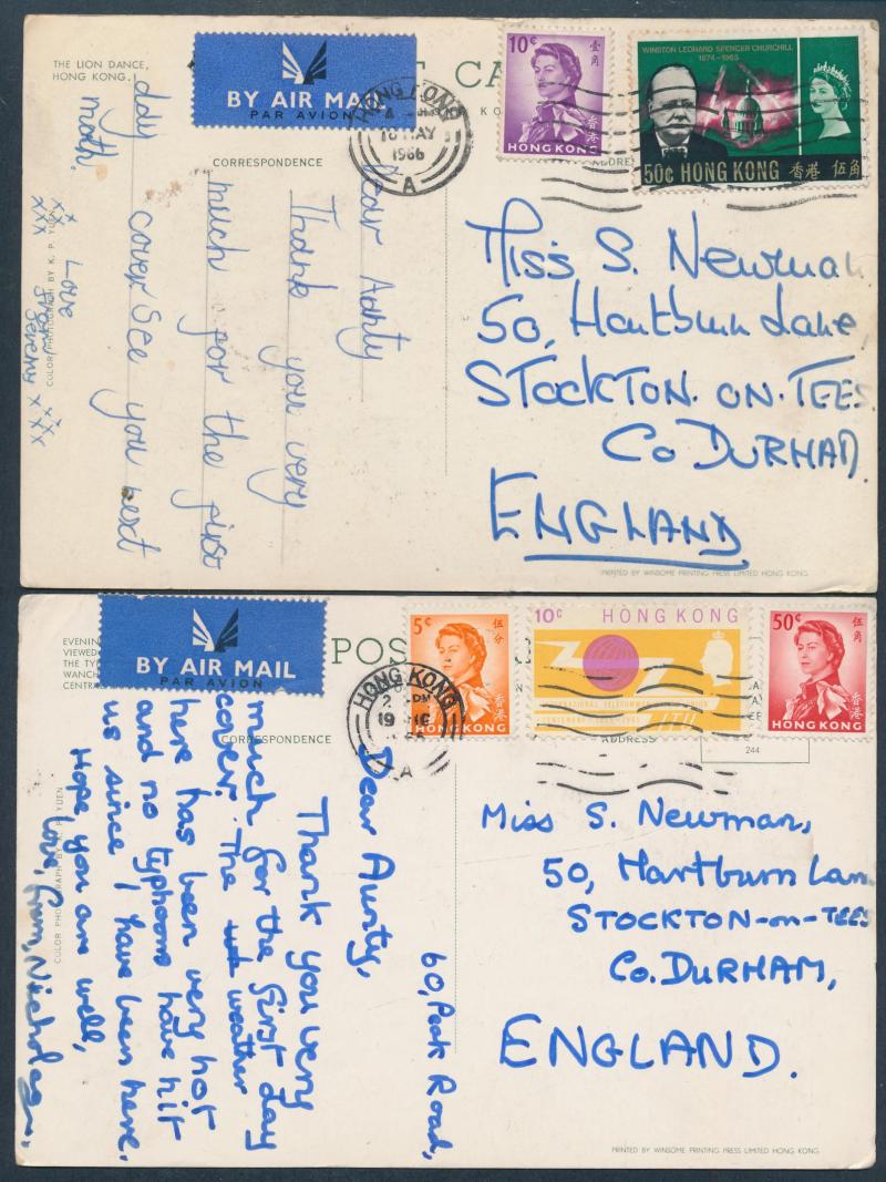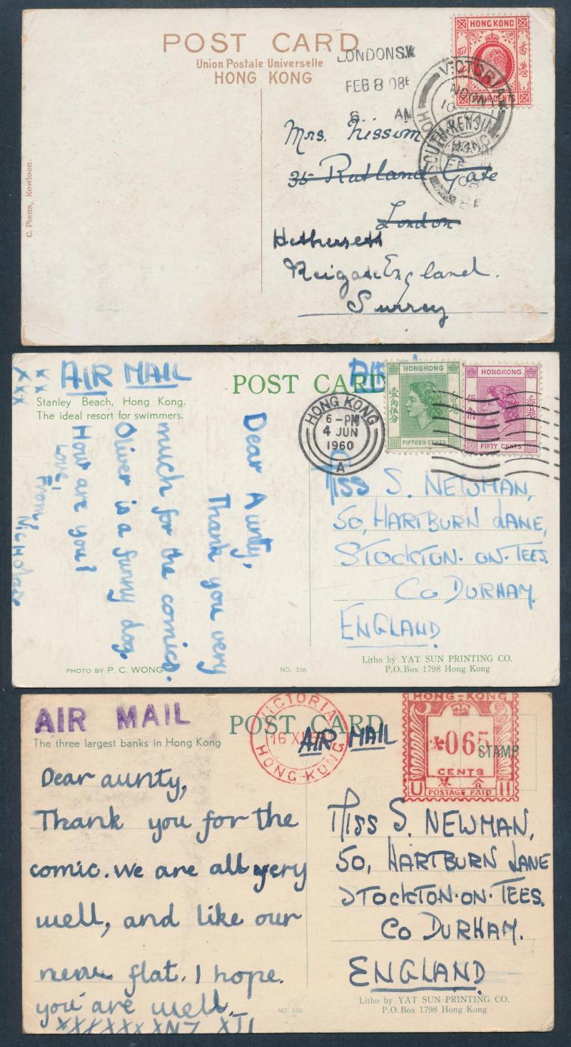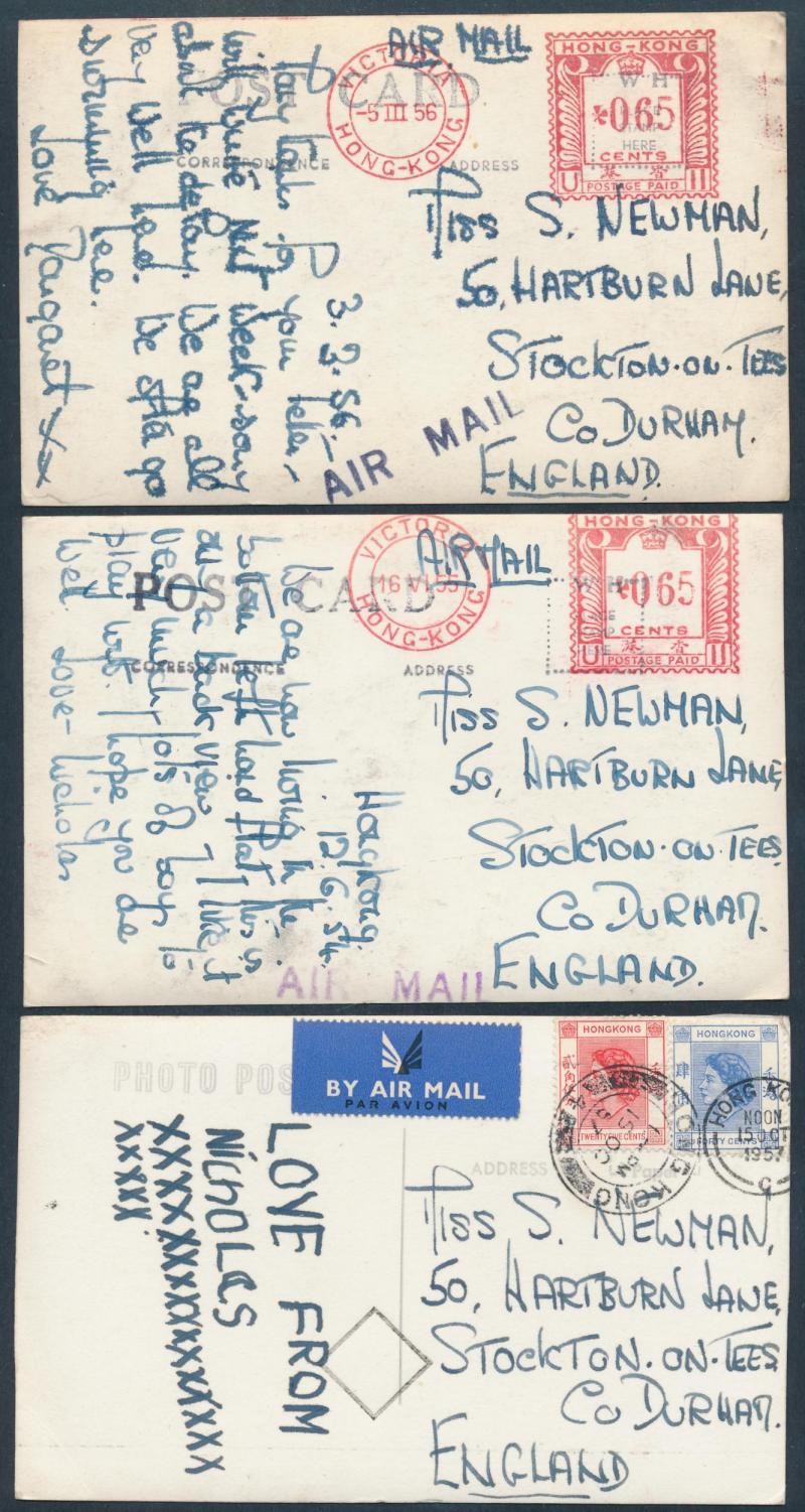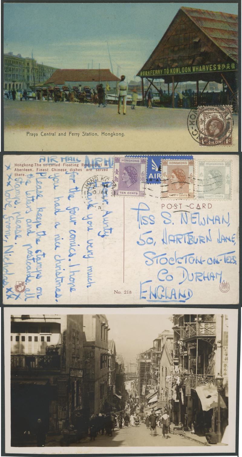 Ferry Station' with KGV 1c brown tied to face by 1913 cds but not posted, real photo of Caire Road with businesses & people, then a batch of 1950s-60s multi-coloured cards airmail to England with a range of frankings including 65c meter cancels, QEII