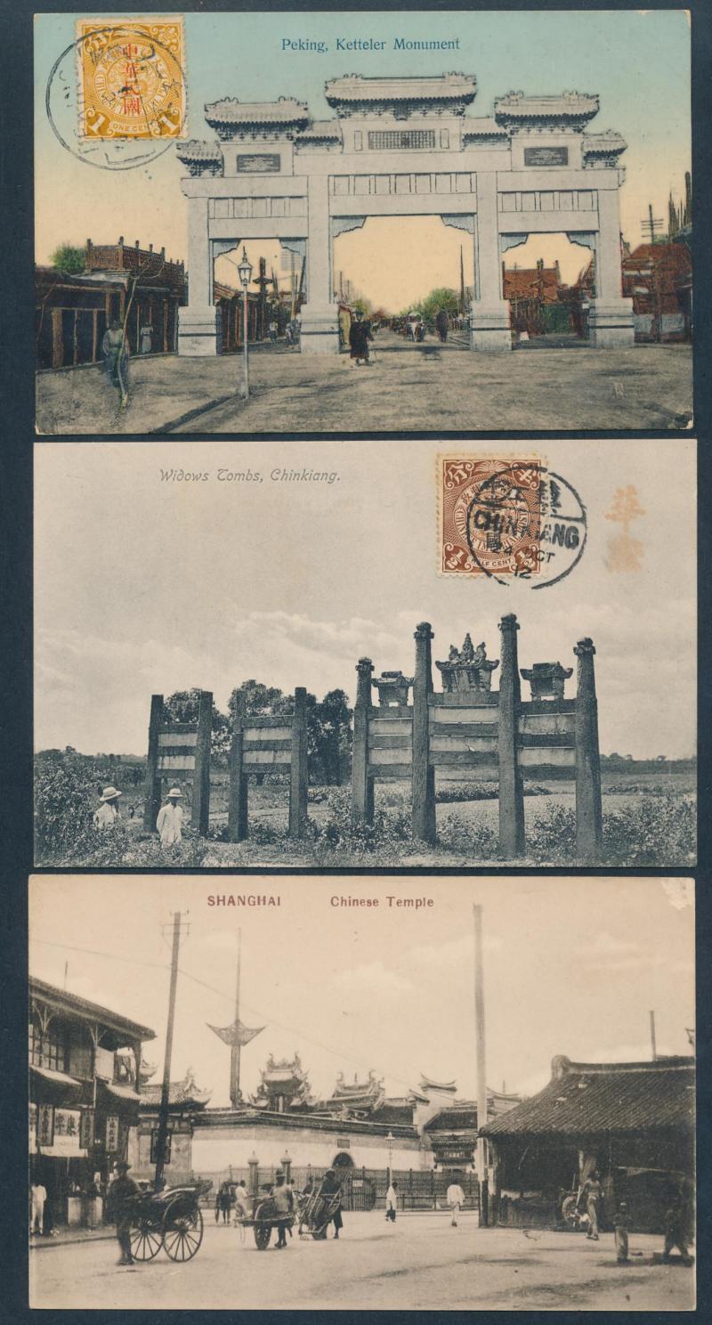 Definitives with various 65c solos and other make-ups, Shipping, Churchill, etc, also China x6 noted 'Widows Tombs, Chinkiang' and 'Peking, Ketteler Monument' both with Coiling Dragons ½c and 1c tied to the faces by local cancels respectively but not