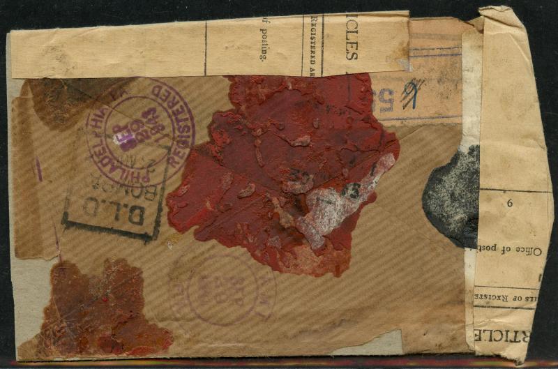 Bombay?), re-forwarded with 'MIAMISEP/29/1943' transit & very fine 'PHILADELPHIA/SEP/29/1943/REGISTERED' arrival backstamps. A real enigma. Items from this crash with the erroneous label are well-known. However, Nierinck states that no details are