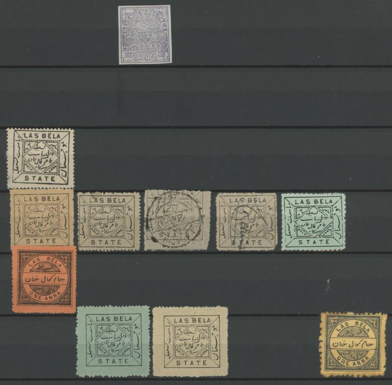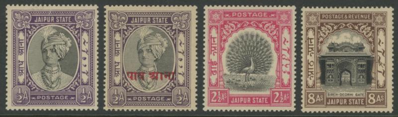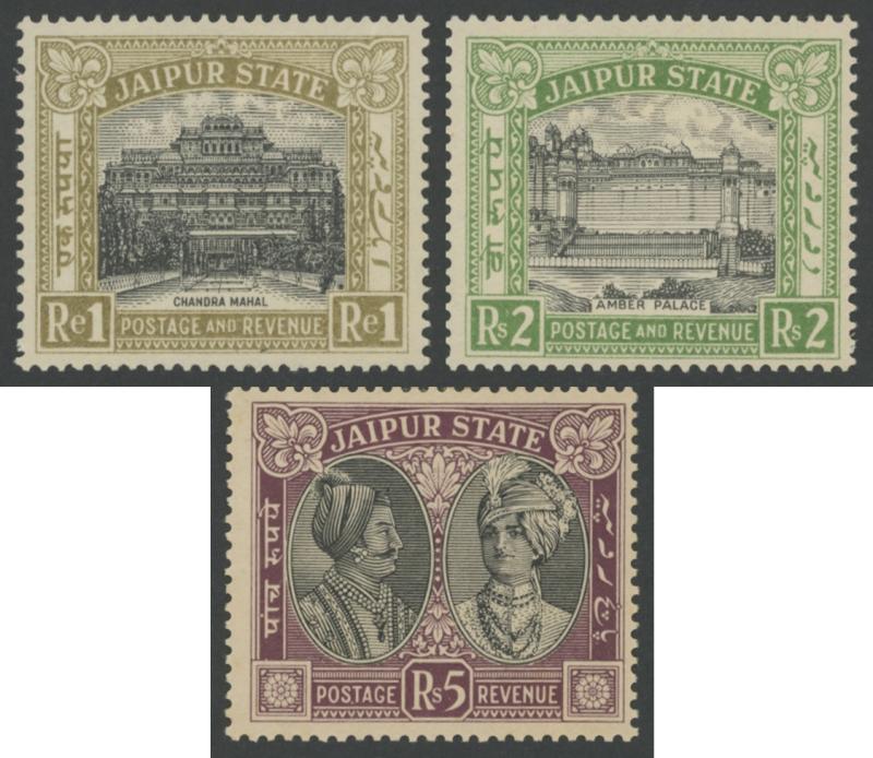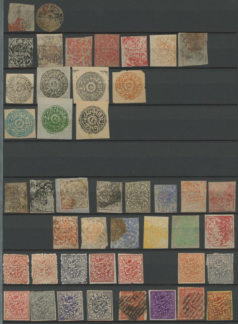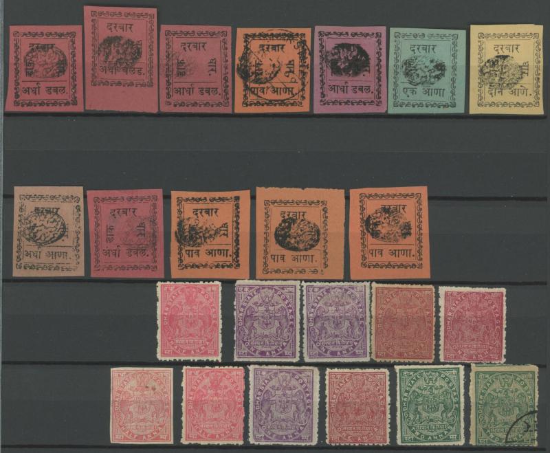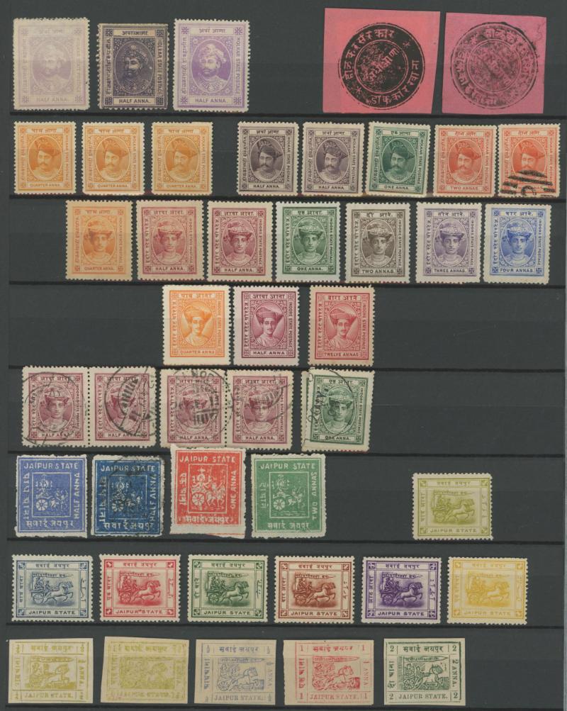 x2 & 1870 2a, Indore 1904-20 Tukoji set, Jaipur 1905-09 Chariot set, Jammu & Kashmir range including 1878-79 1a mauve, 2a violet & 2a bright mauve, Kishangarh 1900 Tall Arms ½a lilac on Thin White Wove Paper without gum as issued, Las Bela 1897 ½a