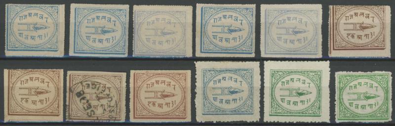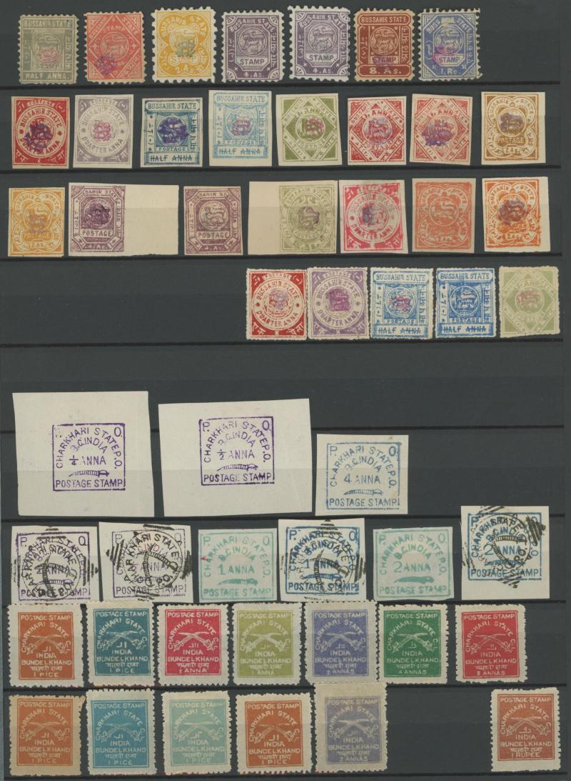 4a-12a, Bundi 1897-98 Narrow Dagger Blade 4a & 8a (both with light creases) and Wide Dagger Blade 8a & 1r x2, Bussahir 1895 Tigers with Monogram overprints Imperf 4a * & 1r CTO (remainder; ISES certificate) and Sewing Machine Perf 1a-8a plus 1r,