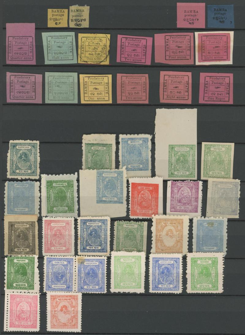 Predominantly unused/mint collection from most States including Bamra 1888 Typeset ¼a black/yellow as SG 1 (reprint; ISES