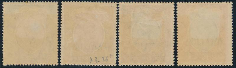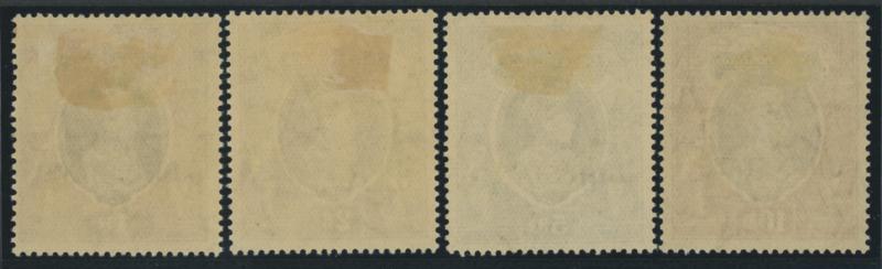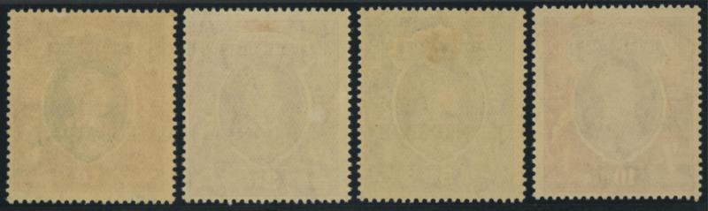 Watermark Inverted, 5r ultramarine & purple with the Watermark Inverted, 10r green & scarlet, 15r blue & olive, and 25r orange & blue SG 96, 97w & 98-101, fresh colours, centring variable, lightly mounted or with small hinge remainders, Cat £866.