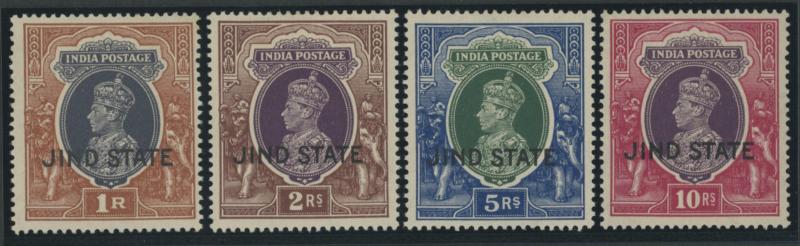 JIND: 1937-38 'JIND STATE' Overprints on KGVI Definitives Multiple Stars Watermark 1r grey & red-brown, 2r purple & brown, 5r green