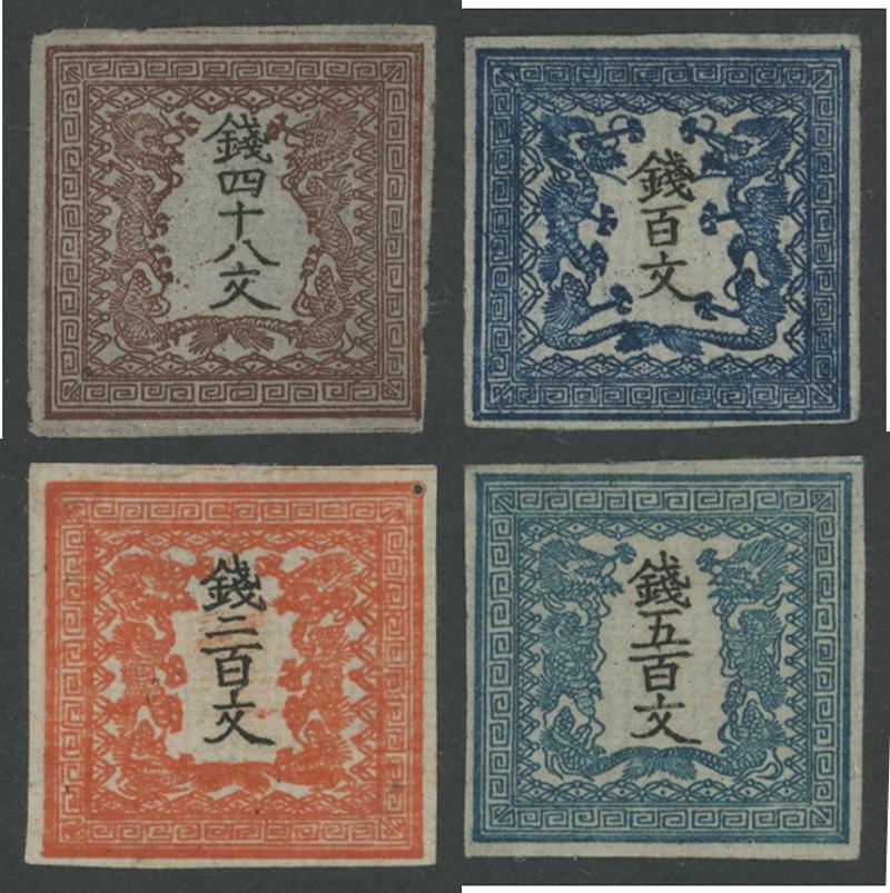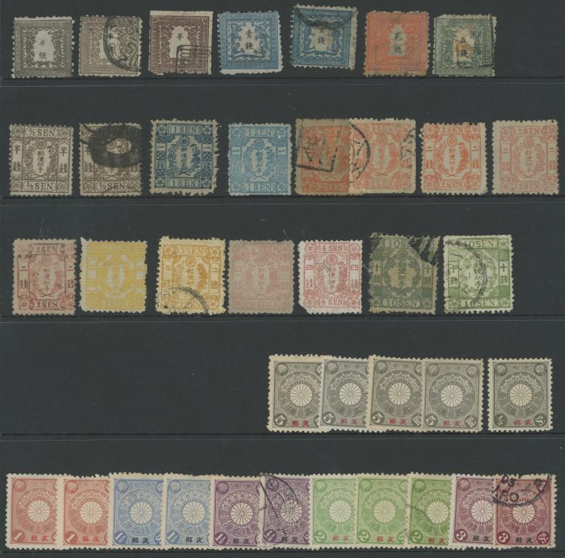 Selection of early issues with Dragons 100m & 200m on small pieces, 1872 Perf Dragons in mixed condition, 1872 Cherry Blossoms to