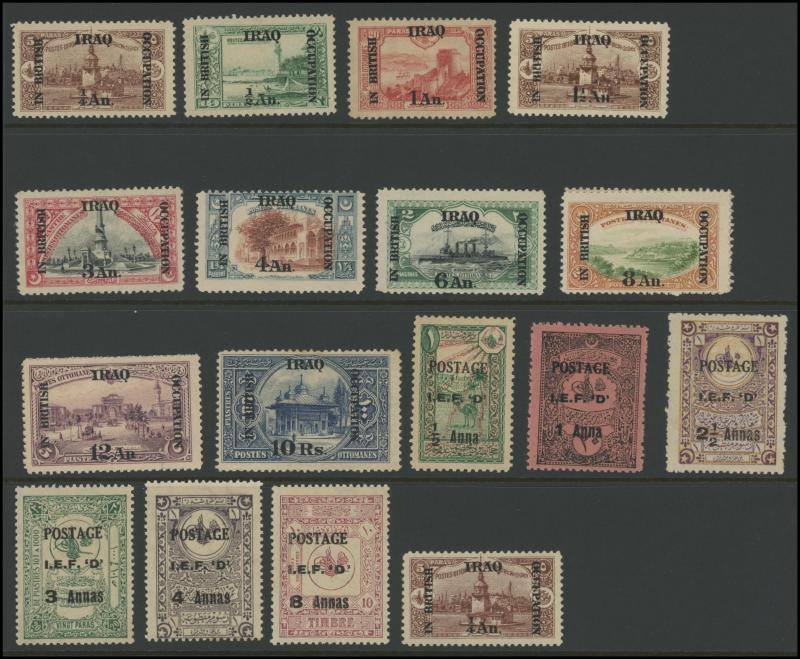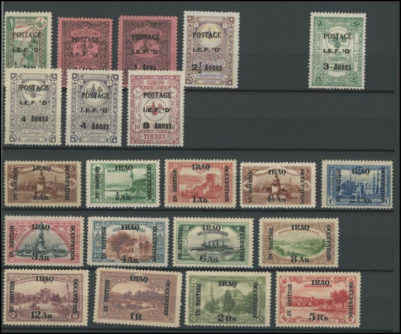1918-21 Occupation Surcharges ¼a on 5pa to 10r on 100pi very fine plus another set with some minor faults 1919 IEF Surcharges